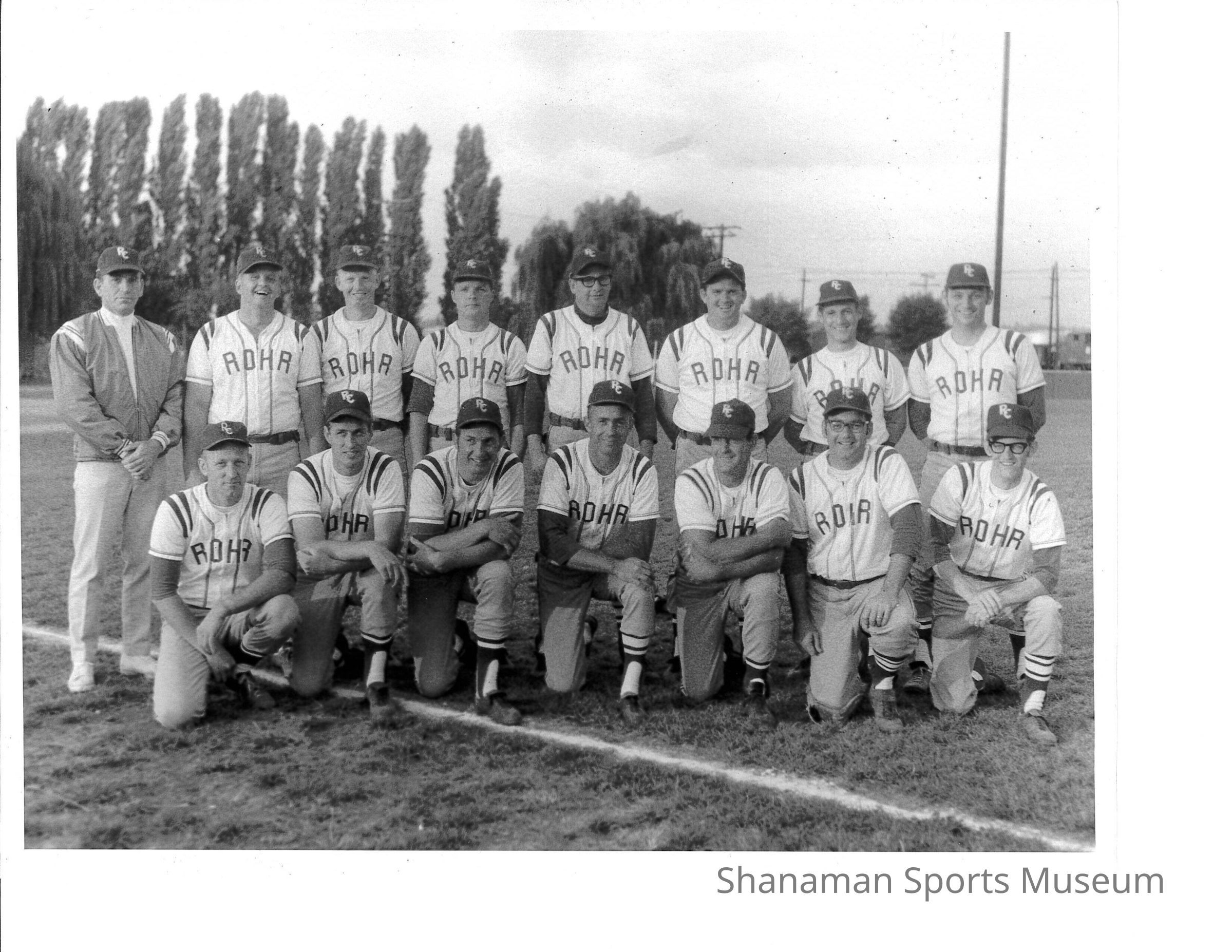Photograph- b/w, Team photo of the 1969 Rorh Fastpitch team. Under the guidence of manager Lowell Nelson, Rohr Corporation were champions of the Northwest Major League and also were the Tacoma Metro champions finishing the season with a 46-19 won-lost record. George Karpach led the team in hitting in league play with a .371 batting average.