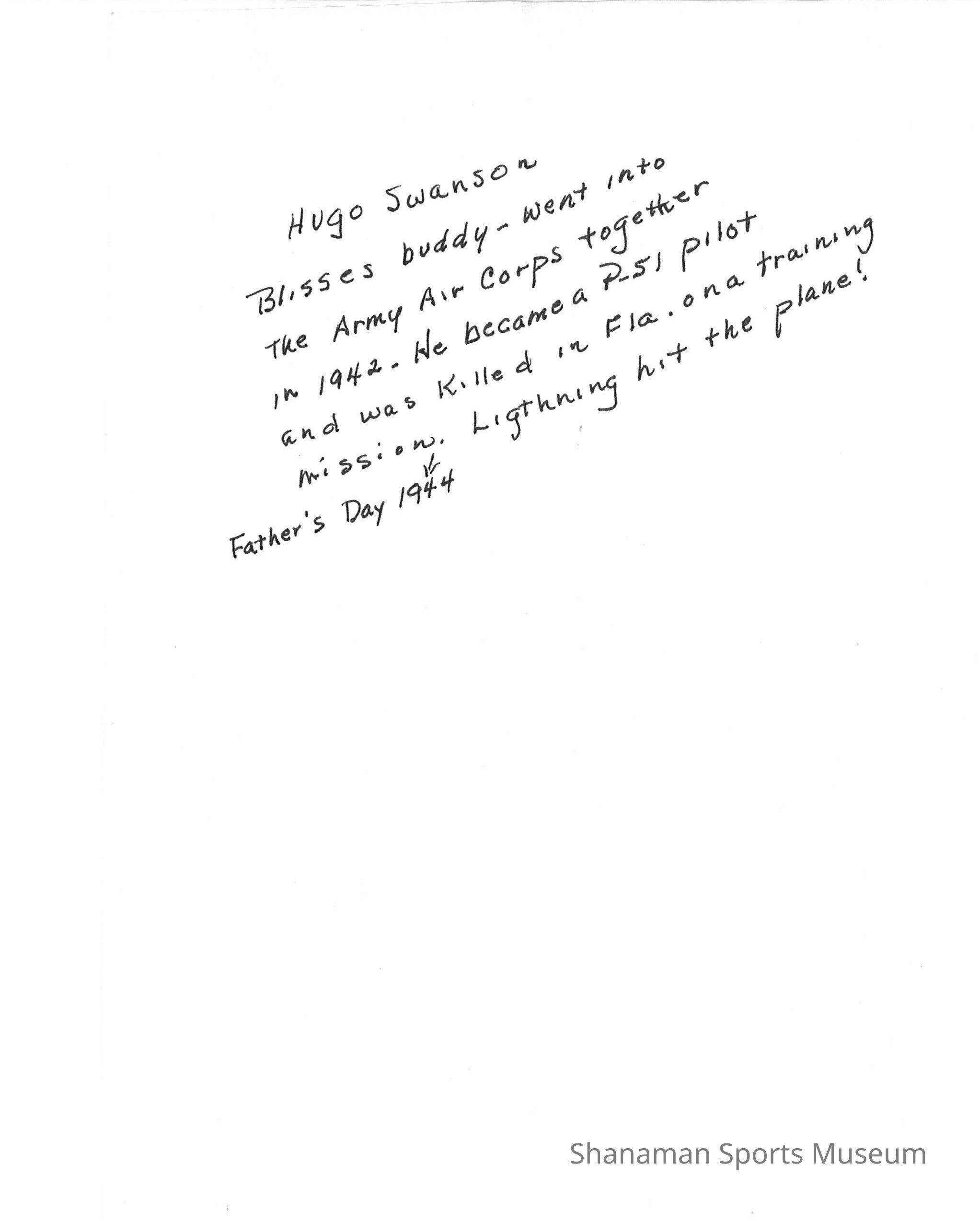 Photograph, b/w, of Hugo Swanson who played football at Pacific Lutheran College before joining the air force during WWII. He was a fighter pilot who died in Florida during a training mission in 1944.Relationships