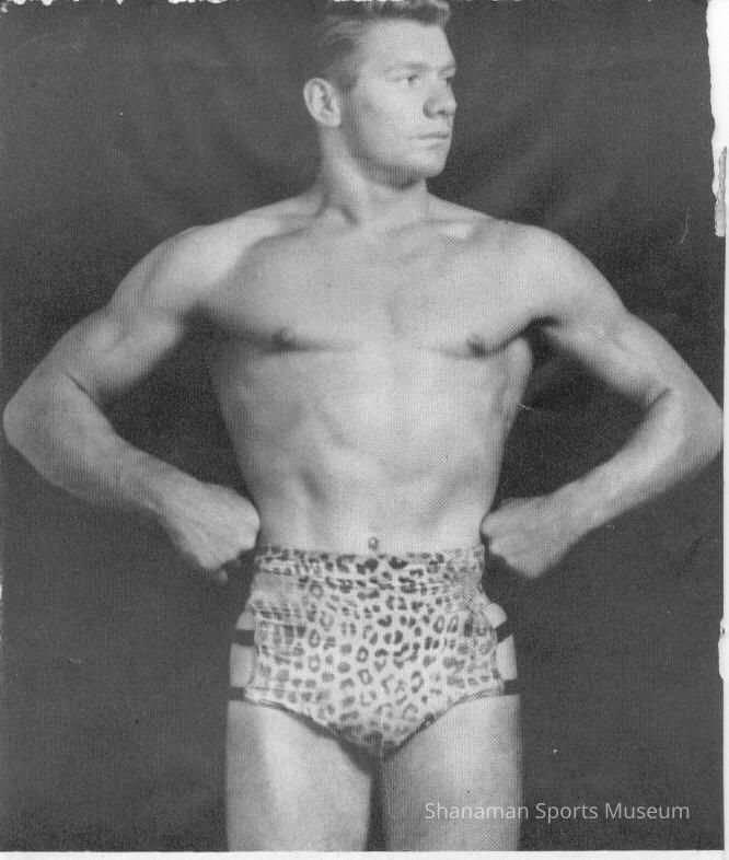 Photograph, b/w of Bliss Lee Croft posing with leopard print briefs. Croft was a Tacoma native and was an accomplished boxer in the 1940s.Relationships