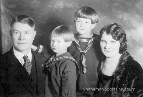 Photograph, b/w of the Croft family c. 1927. HW Lee Croft, L, Croft became a Pierce County Sheriff. Bliss Lee Croft (one of the boys) became an accomplished boxer in the 1940s. Pearl Croft is right and Doyle Croft is the other boy.
