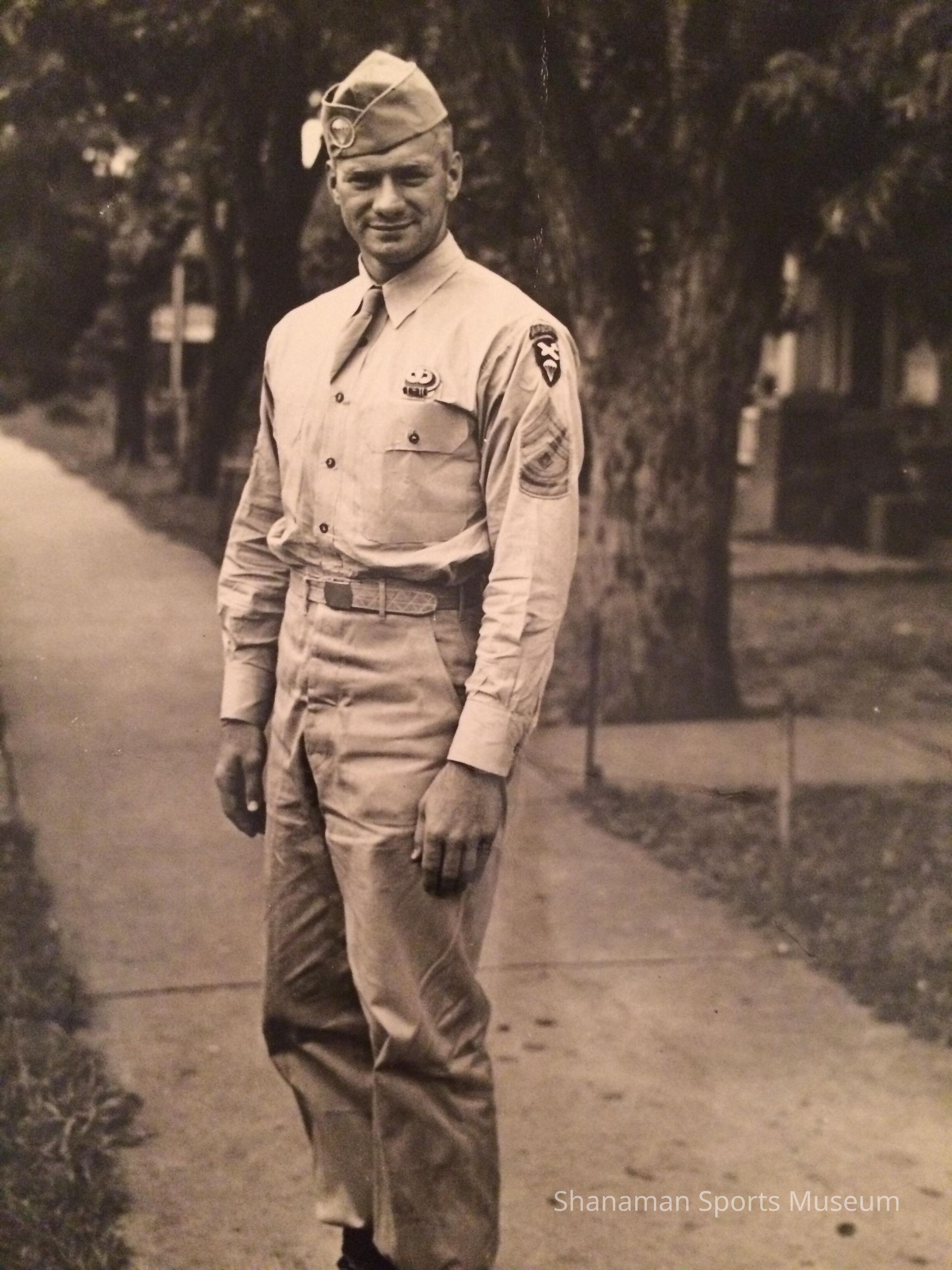 Photograph, b/w of Bliss Lee Croft wearing an army uniform. Croft was a Tacoma native and was an accomplished boxer in the 1940s and served in the air force during WWII.Relationships