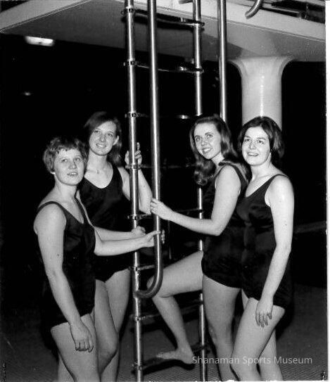 photograph, b/w of the 1965 Pacific Lutheran University Sea Spirits synchronized swim team. 1965 was the first year of the team.Lexicon