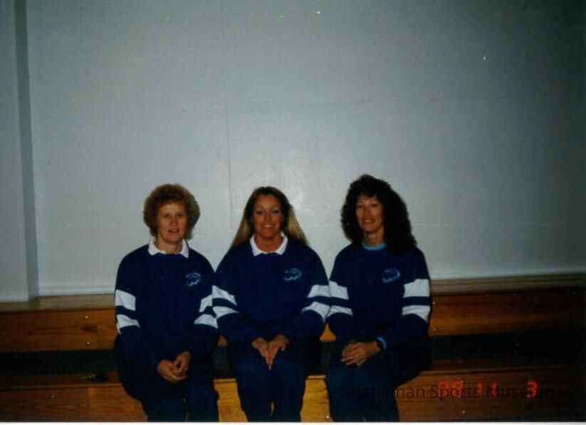 photograph, color, 1988 Bellarmine Prep High School womans volleyball coaches. L-R: Angie Eichholtz, Dottie Harris, unknown.Relationships