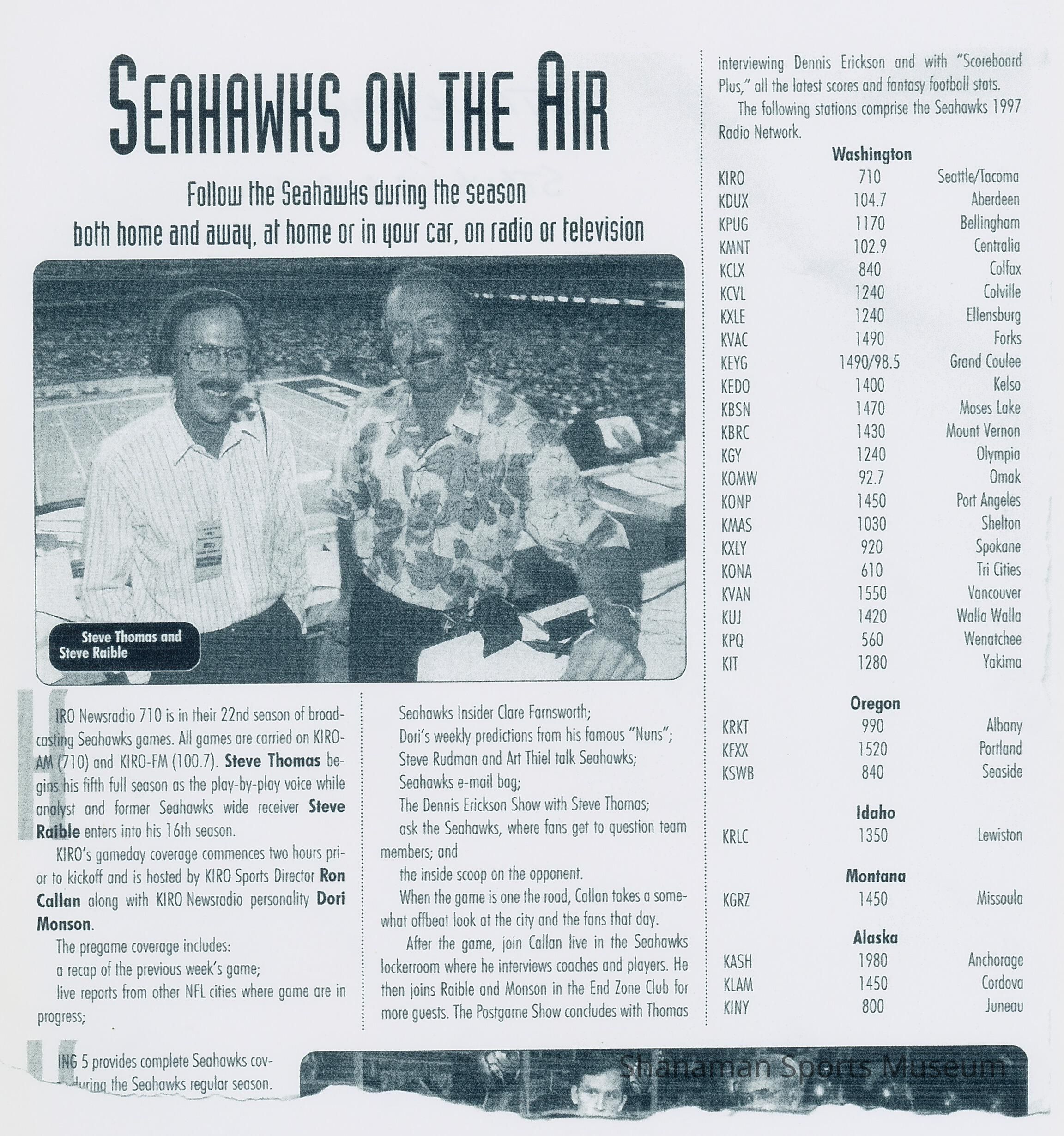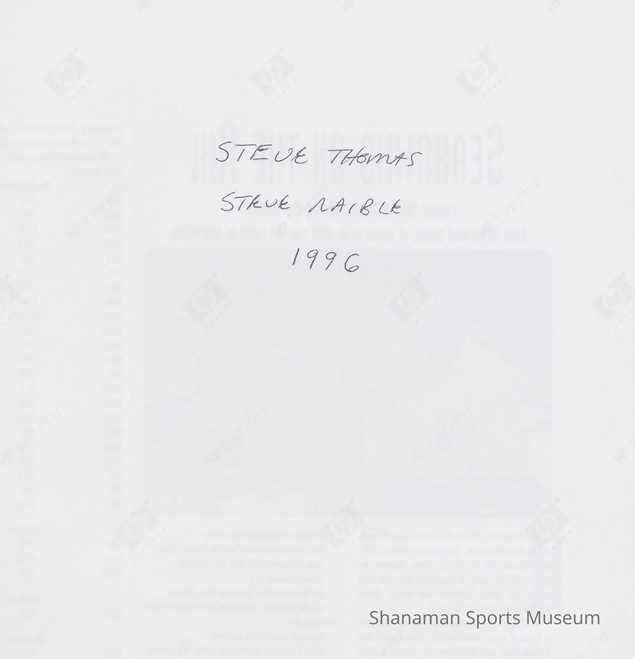 B&W copy of newspaper article featuring a photo of two men (written on back "Steve Tomas Steve Raible 1996")