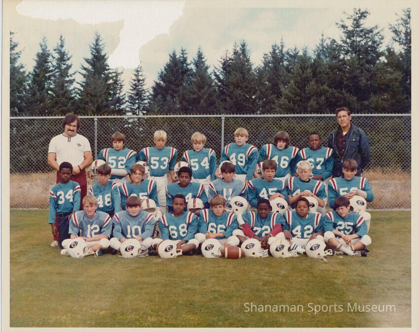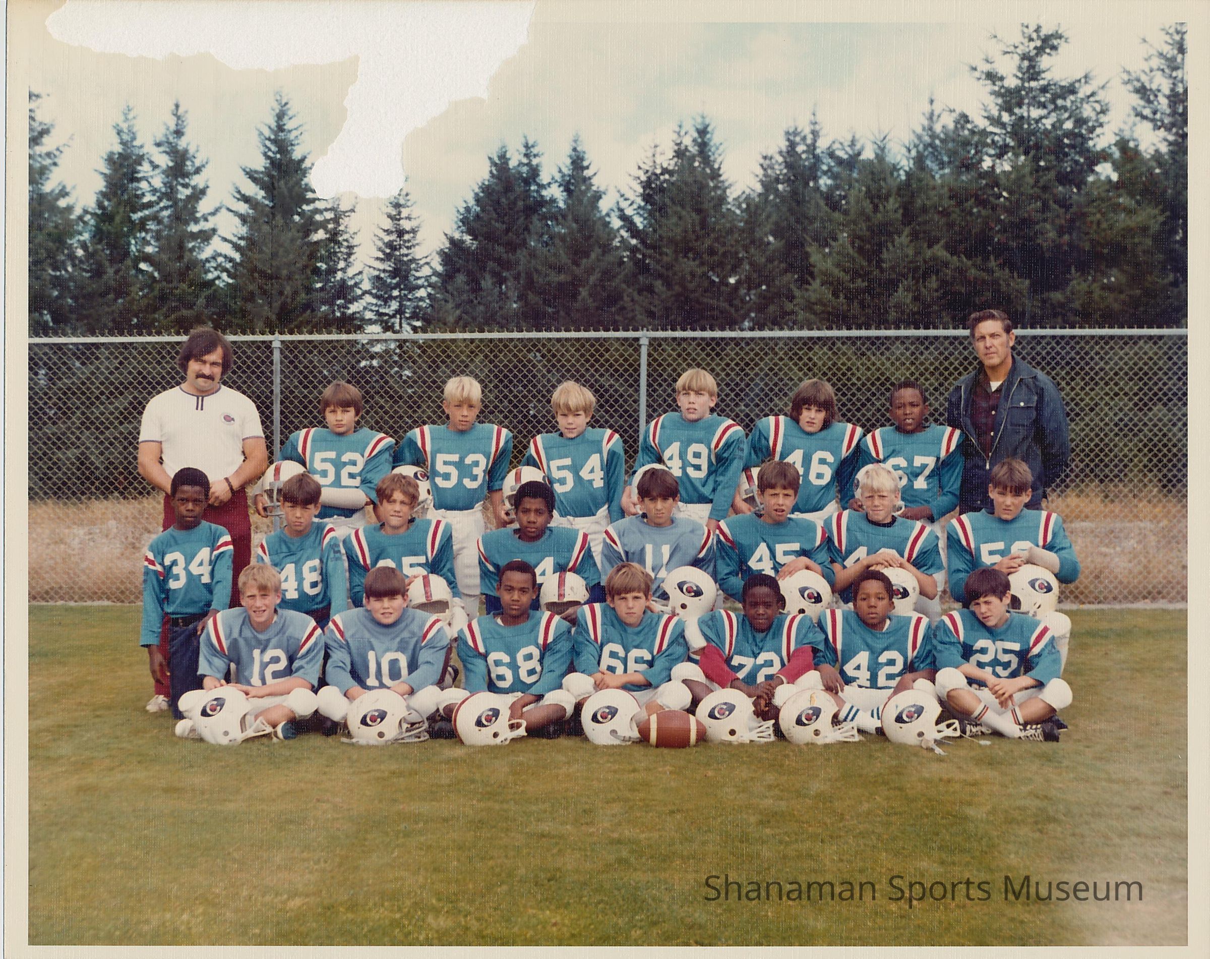 Photo of youth footbal team; written on back of photo "1972 Rookie Football ESBC"