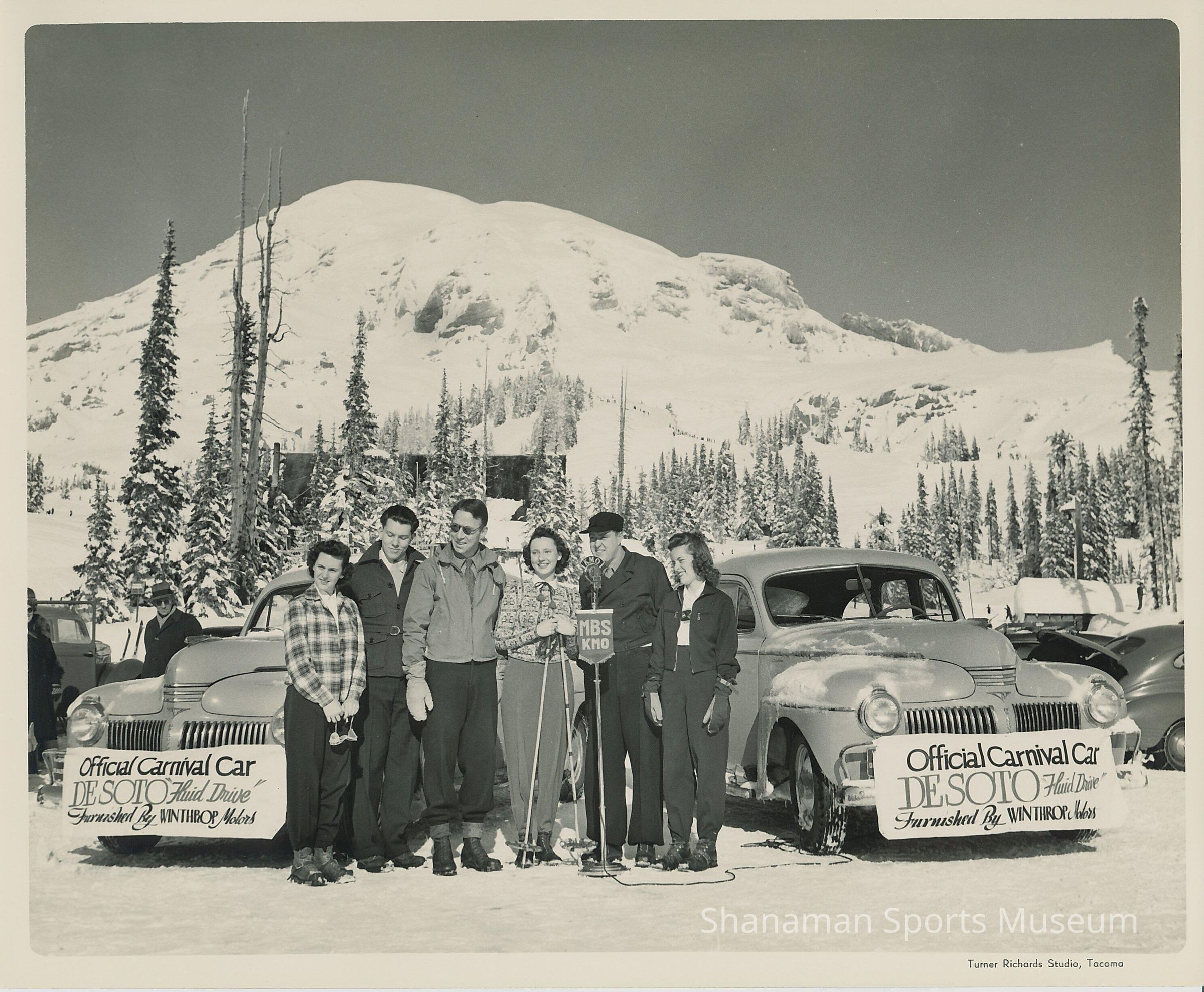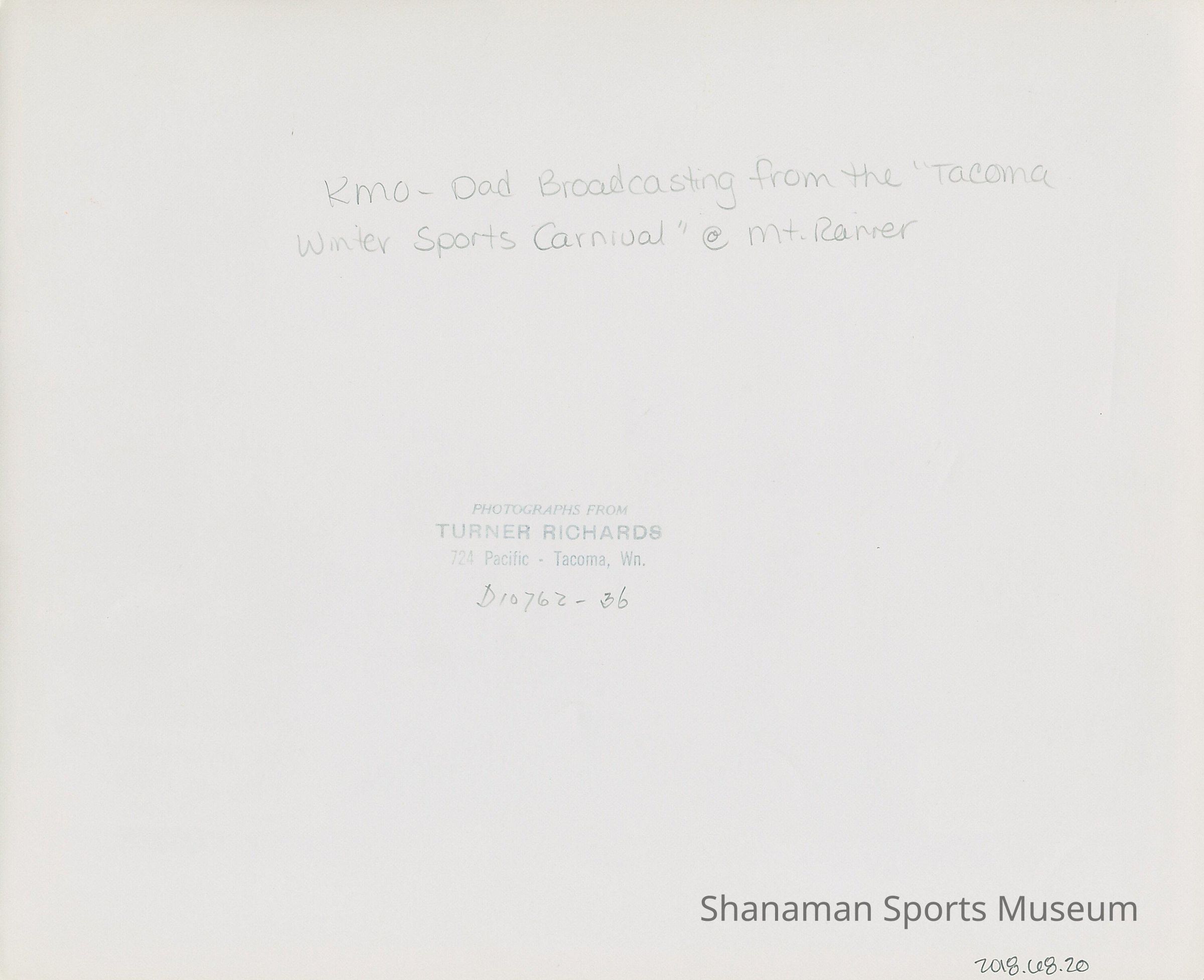 Jerry Geehan broadcasting from the Tacoma Winter Sports Festival at Mt. Rainier