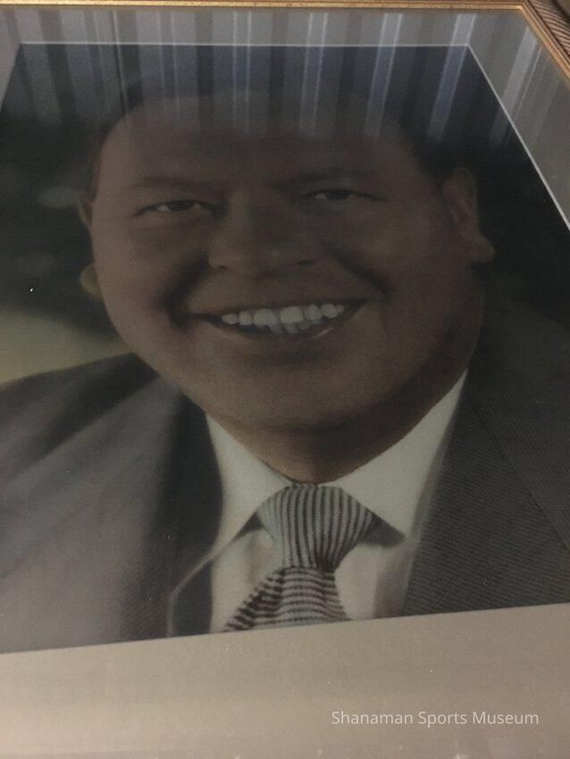 Framed photo of a man in a grey suit with a striped tie. Found during move January 2019.