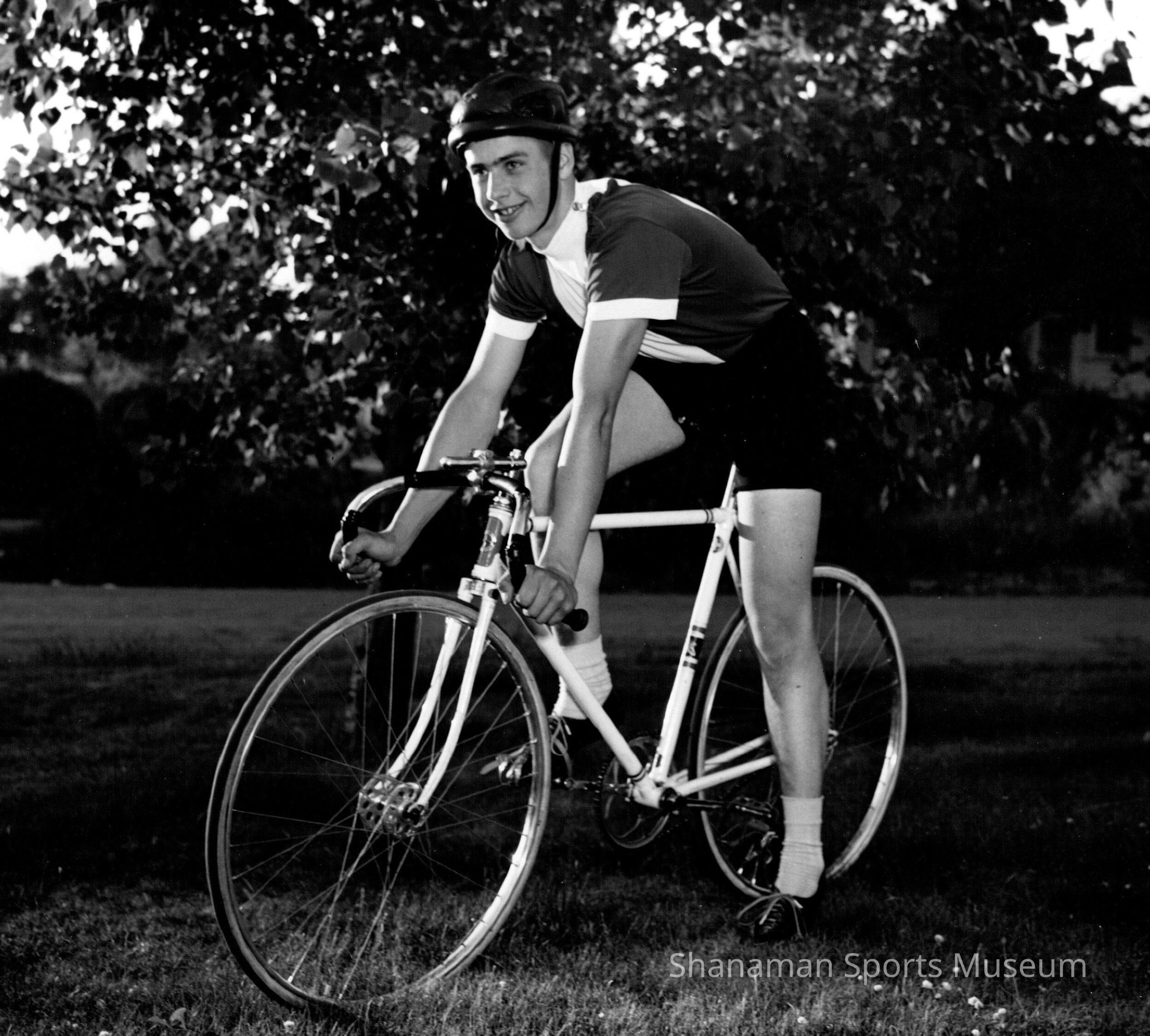 Photograph- b/w, Dick Perkins on a bike, c. 1950.
