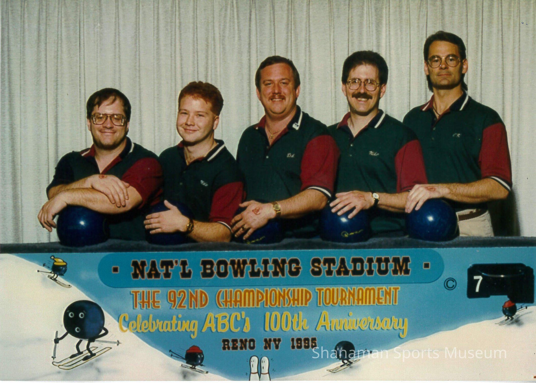 Photograph- color, bowling team, 2005 ABC Tournament in Reno. L-R: Daniel Pero, Michael Kennedy, Bob Hanson, Mike Karch, and C.K. Moore.