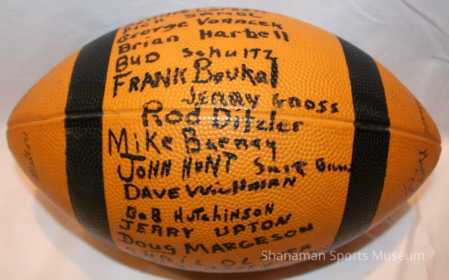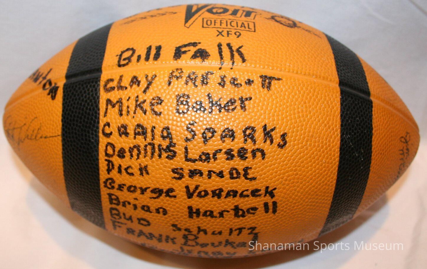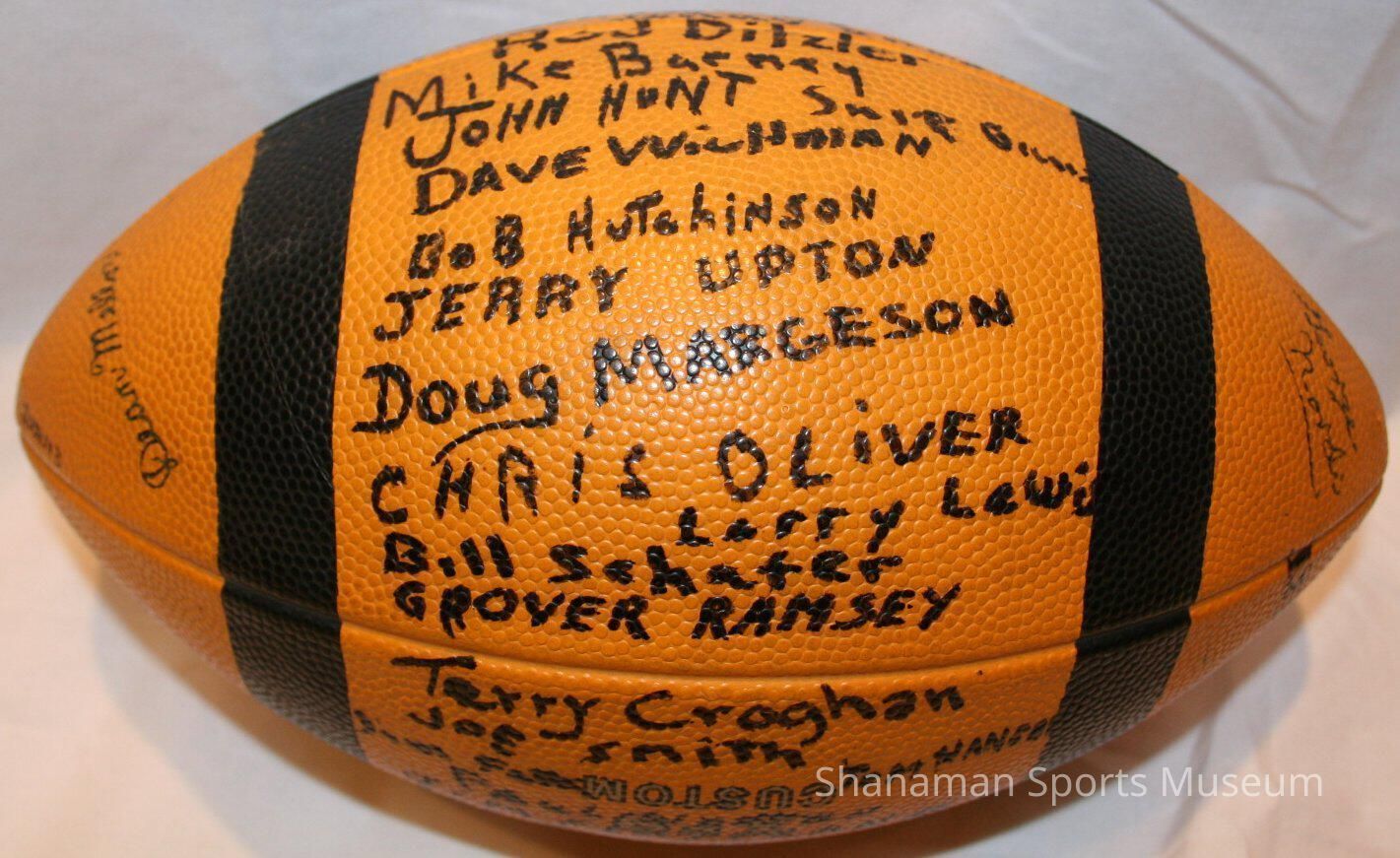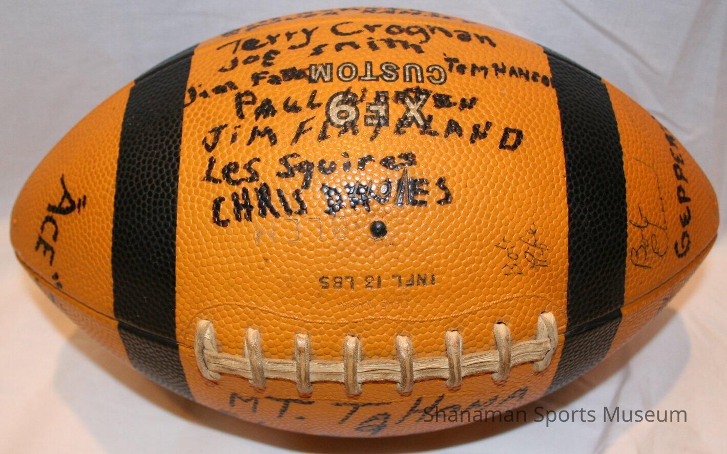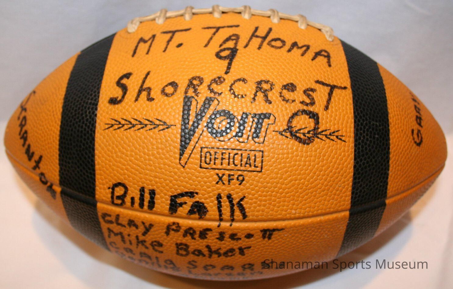 Commemorative football- commemorating Mt. Tahoma High school's win over Shorecrest High School. Gregg Friberg was the first-ever coach at Mt. Tahoma.