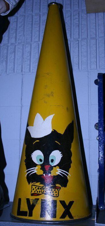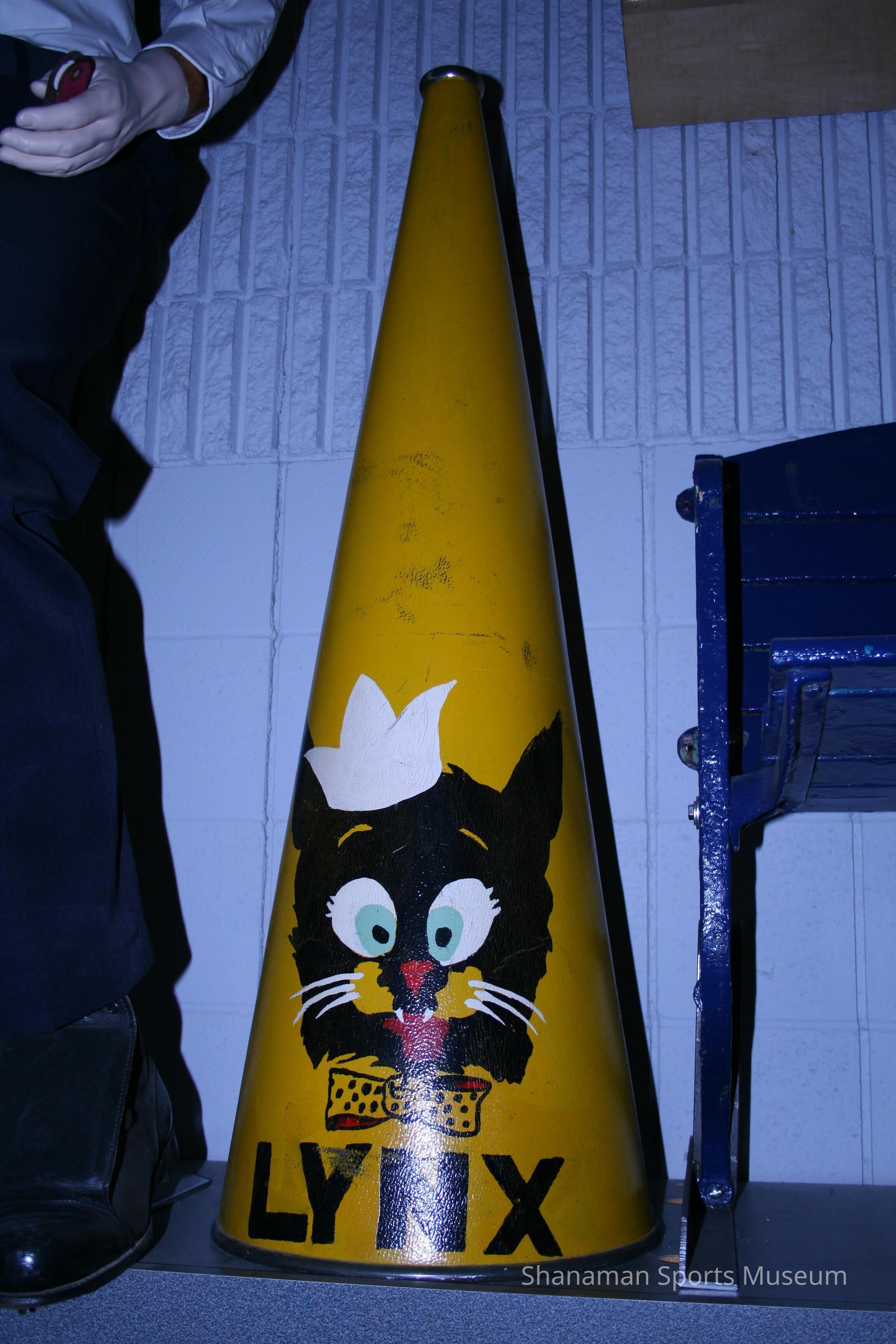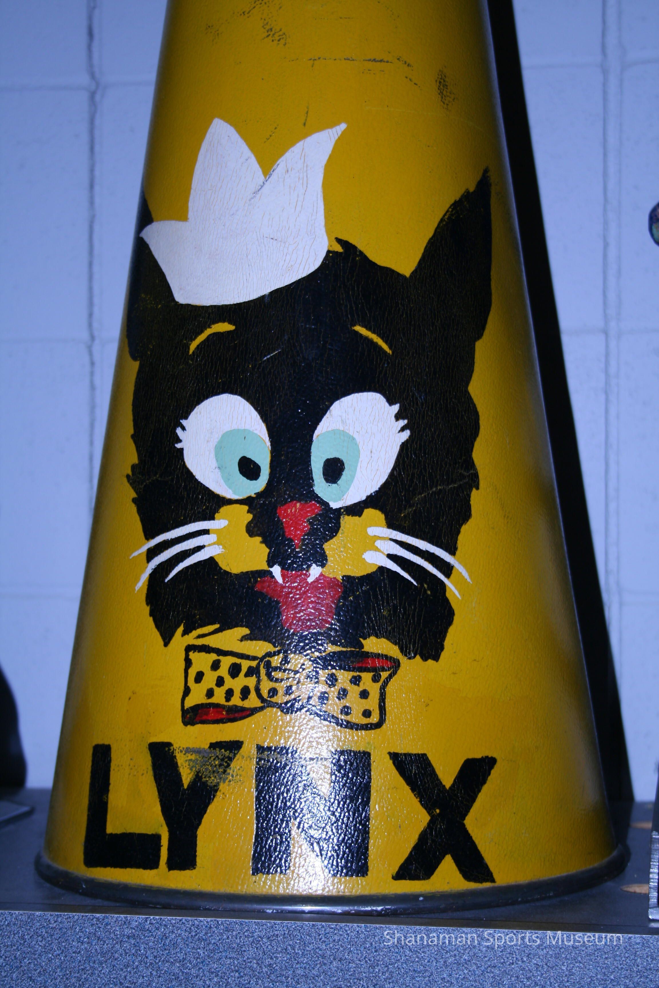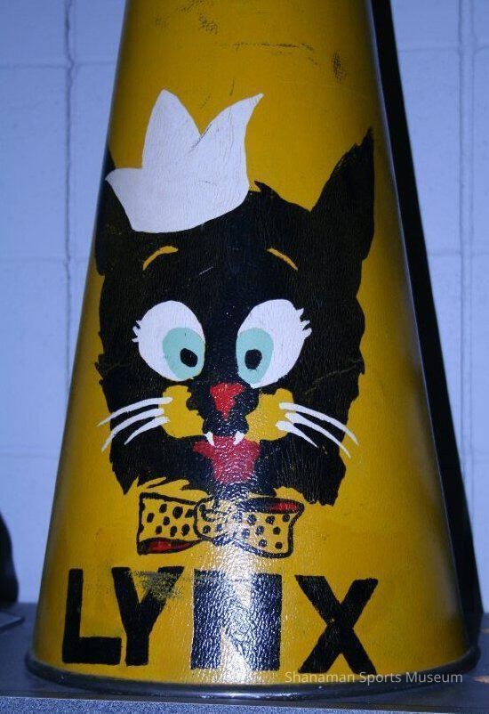 A yellow megaphone with a cartoon cat in a bowtie was used by Carole Preuss while she was a Lincoln High School cheerleader for the Lynx in Seattle. Cheerleading was popular among the student body as they led students during football, basketball games and pep rallies. Lincoln High School began in 1907 but the school was closed in 1981 due to falling enrollment. It was reopened by the Seattle School District in 2019.