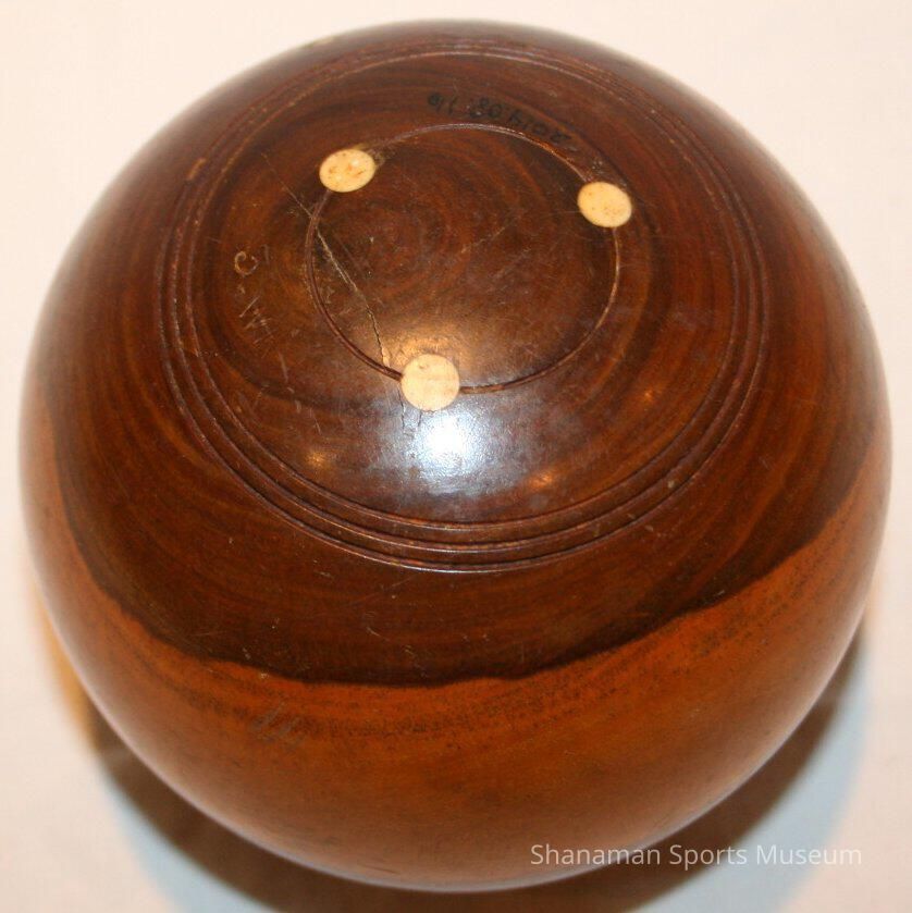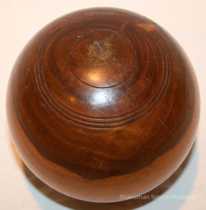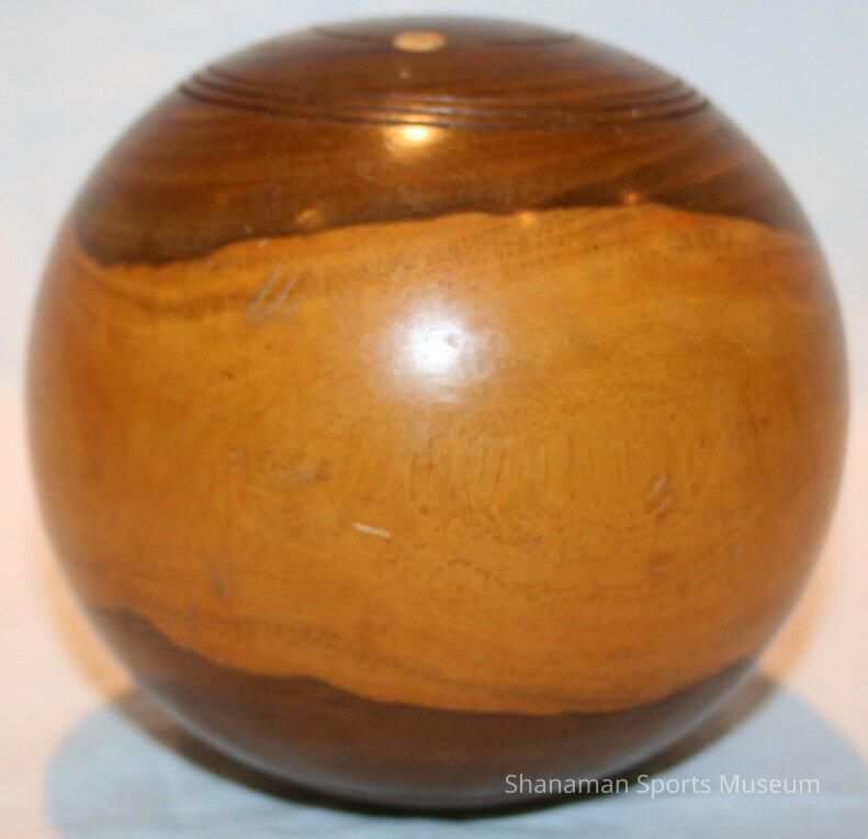 Lawn Bowl- solid wood ball of a light and dark marbled wood. 4" dia.