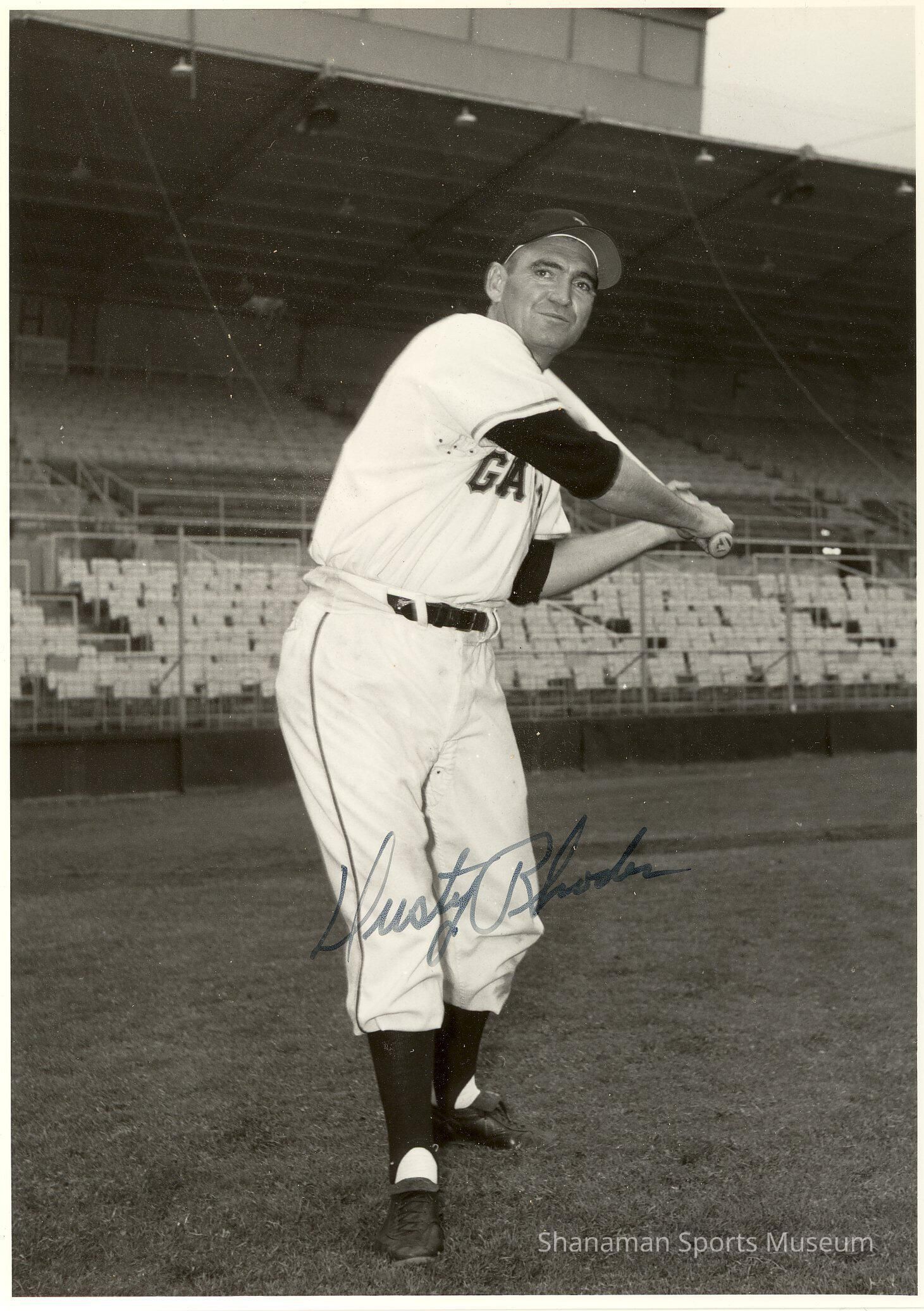 Dusty Rhodes was an outfielder for the 1961 Tacoma Giants, just seven years after he was the hero of the 1954 World Series while playing for the New York Giants. In the 1954 World Series, Rhodes belted a pinch hit home run in the bottom of the tenth inning off of Bob Lemon to win the game. He played for the New York Giants from 1952-57 and San Francisco Giants in 1959 before coming to the Tacoma Giants.Made/Created