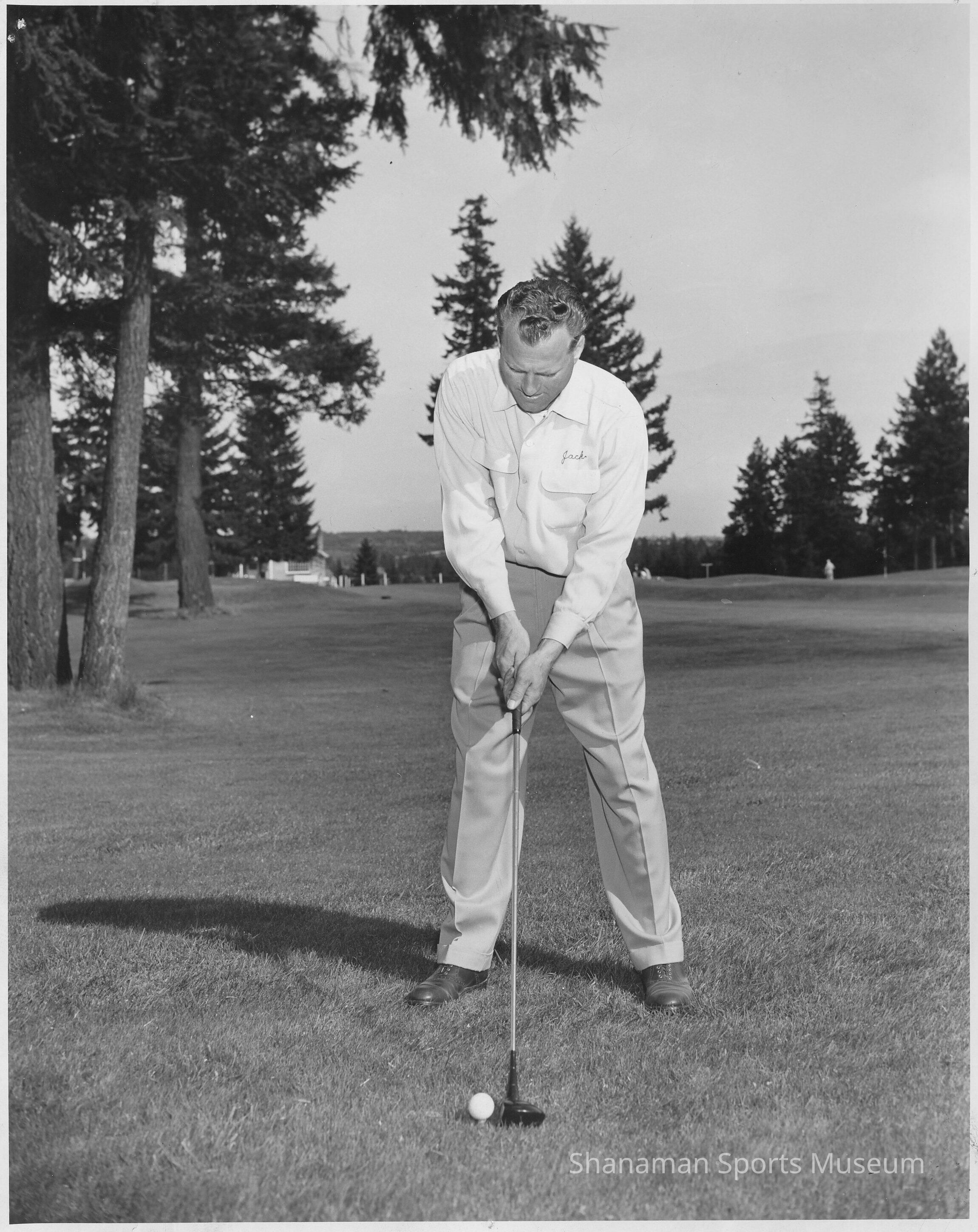 Jack Walters lines up another iron shot, something he was very good at. He got an early and successful start in golf. At just 16, Walters won his first Washington left-handers tournament in 1929. He entered his first National Association of Left-Handed Golfers (NALG) Championship in 1937. In 1960 with his hometown cheering, Walters had another dream performance when he won the national left-handed golfers tournament at the Fircrest Golf Club. Walters, at the end of his career, called the win his “end of the rainbow victory.” He won two national tournaments for lefties, winning his first in 1953. He won the Pacific Northwest lefties title an impressive 16 times.Lexicon