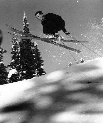 Carleton Wiegel catches air while skiing at Mount Rainier National Park. Weigel, a talented skier, competed in the first Silver Skis race at Rainier in 1934. Sixty skiers started, 44 finished and one broke his jaw during the mass-start race from Camp Muir to Paradise. Wiegel finished second, edged out by U.S. Ski and Snowboard Hall of Famer Don Fraser.Lexicon