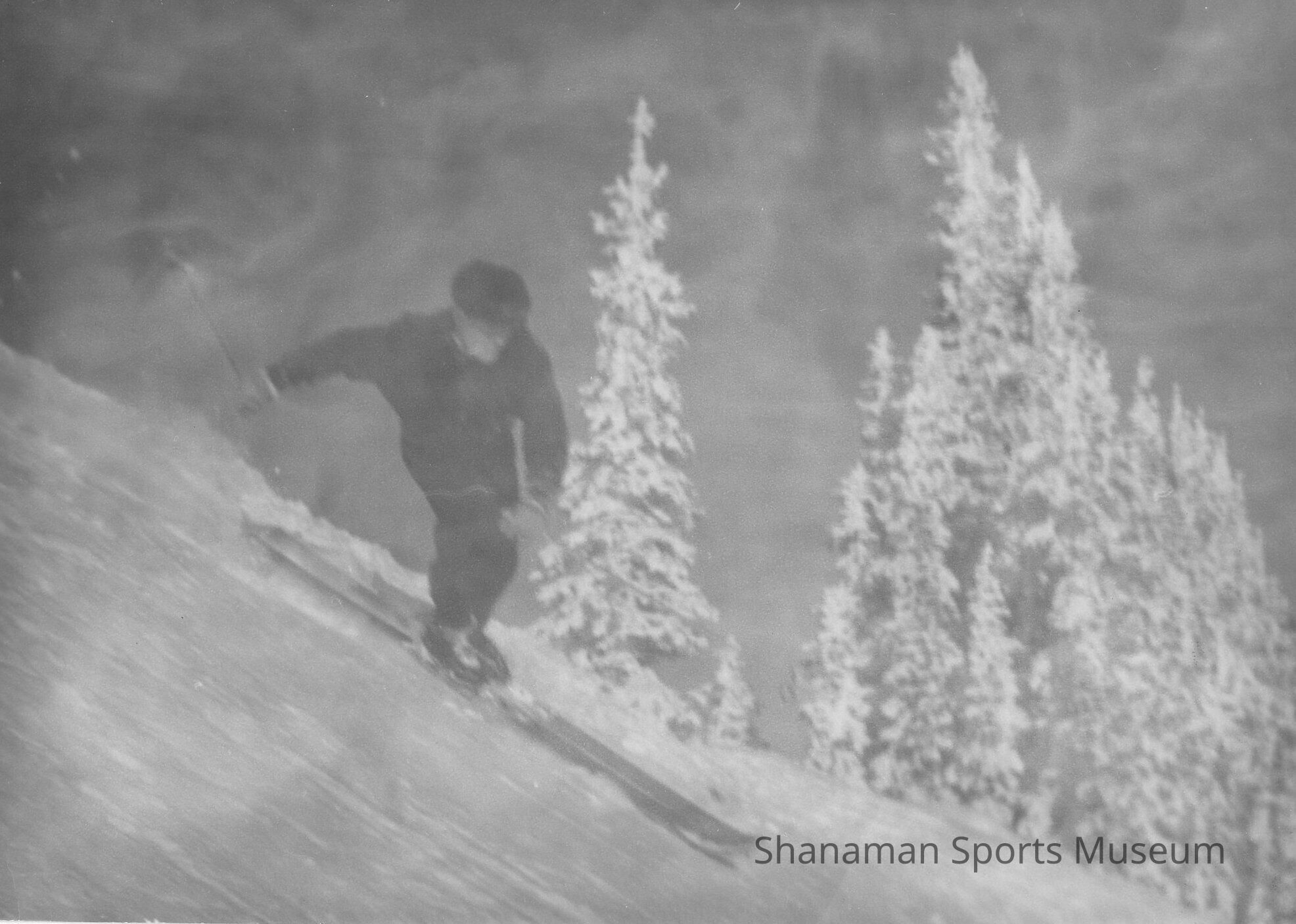 Royce Ward skis past the snow ghosts (snow-covered trees) on Alta Vista, a knoll located above Paradise in Mount Rainier National Park. Paradise was the preeminent skiing destination in Pierce County before Crystal Mountain opened in 1962. Ward was a member of the 10th Mountain Division, an Army unit trained in mountain warfare. The unit spent time training on Rainier.Lexicon