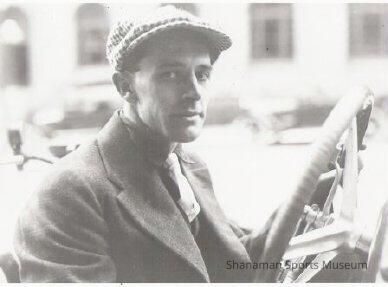 320.1a= Photograph, b/w, Ulsses Aubry in cap behind wheel of car.