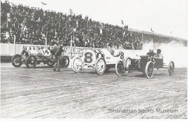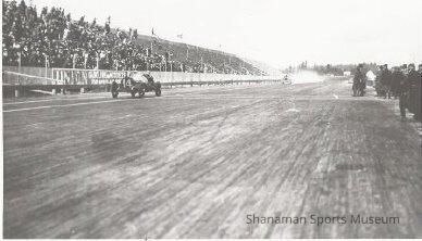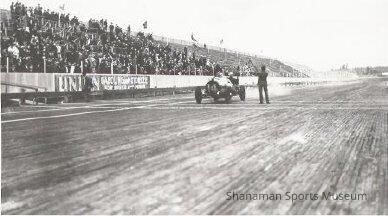 320.1f= Photograph, b/w, crowd at raceway watching car 14 at finish line.Lexicon