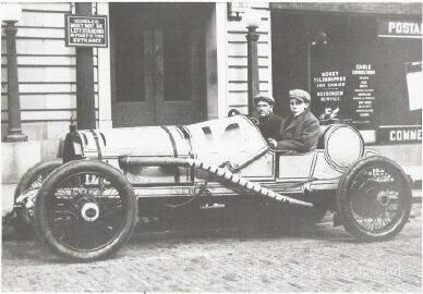 320.1d= Photograph, b/w, Ulsses Aubry and co-driver in car 14 with three men standing around.