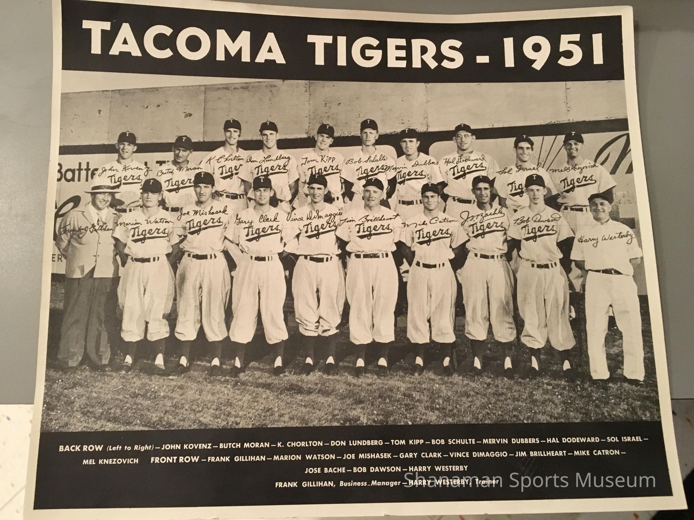 Tacoma Tigers 1951 team photo, printed promotional item. The last year the Tigers played in the Western International League, which waLexicon