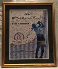 All of the girls who competed in the USGA 2007 U.S. Girls Junior Golf Championship in 2007 autographed this tournament program. The U.S. Girls' Junior Golf Championship was established in 1949. The first tournament drew 28 girls from 17 states. Fifteen-year-old Marlene Bauer of Los Angeles won that first girls junior championship. The following year in 1950, there were only 18 entries in the tournament. In 2007, the U.S. Girls Junior Golf Championship was held in Lakewood, Washington, and played on the Tacoma Country & Golf Club Course. There were 870 entries that year and Kimberly Kim won the tournament.Lexicon