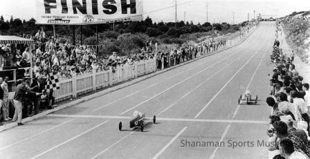 With an excited crowd watching and an official waving the checkered flag, two drivers race to the finish at the Tacoma Soap Box Derby, which is by Cheney Stadium. Local winners qualified for nationals, which are held in Akron, Ohio, in July and draw qualifiers from across the country. Washington has had three national champs – Greg Schumacher in 1964, David Krussow in 1966 and Ronan Johnson in 2017.Lexicon