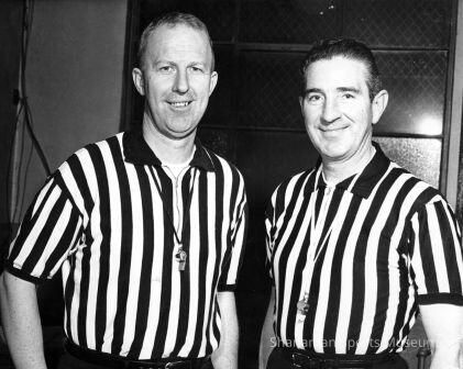Legendary referees Tom Cross, left, and Lornie Merkle, right, posing for a picture in the officiating gear. Cross played for the Tacoma Mountaineers as well as was athletic supervisor of the Tacoma Metropolitan Park District and he retired as Pierce County's first Parks and Recreation director in 1981. Merkle graduated from Bellarmine High School in 1934, and he refereed many high school and Pac-8 games.Lexicon