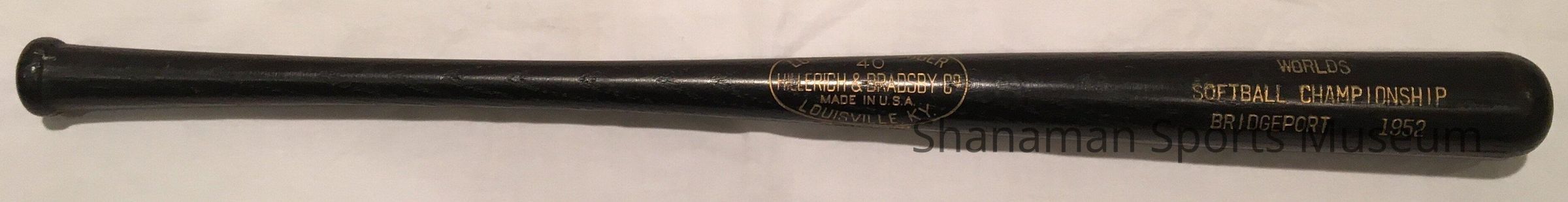 mini bat- commemorative, the Irwin Jones team won 2nd place at the1952 World Softball Championship in Bridgeport.Relationships
