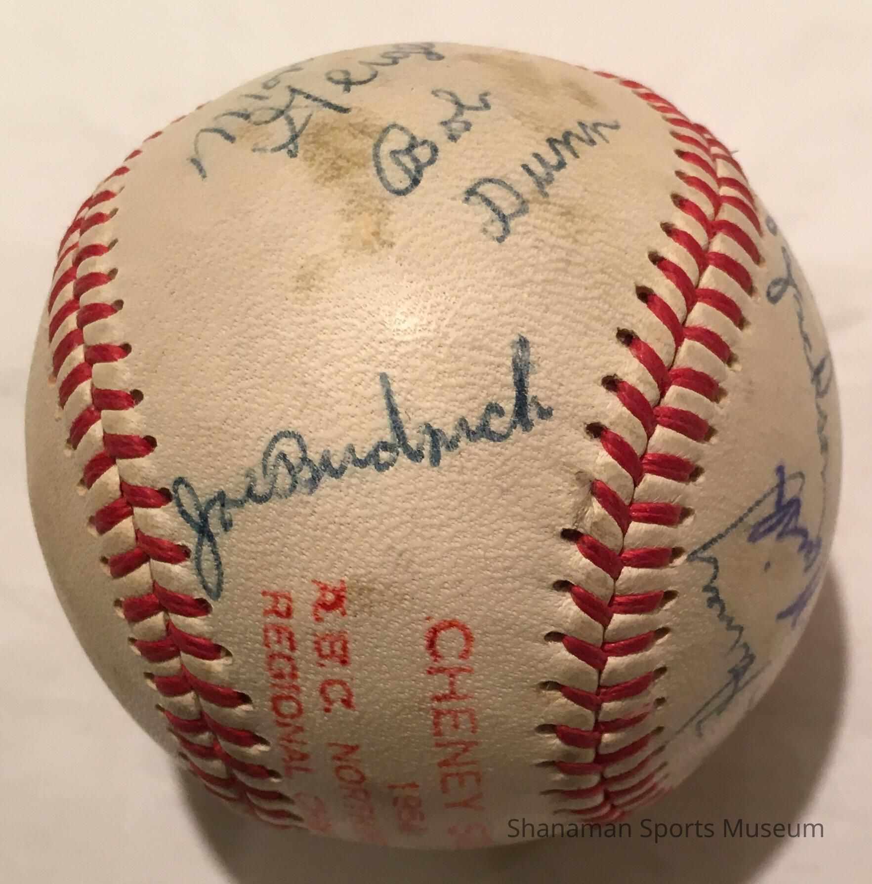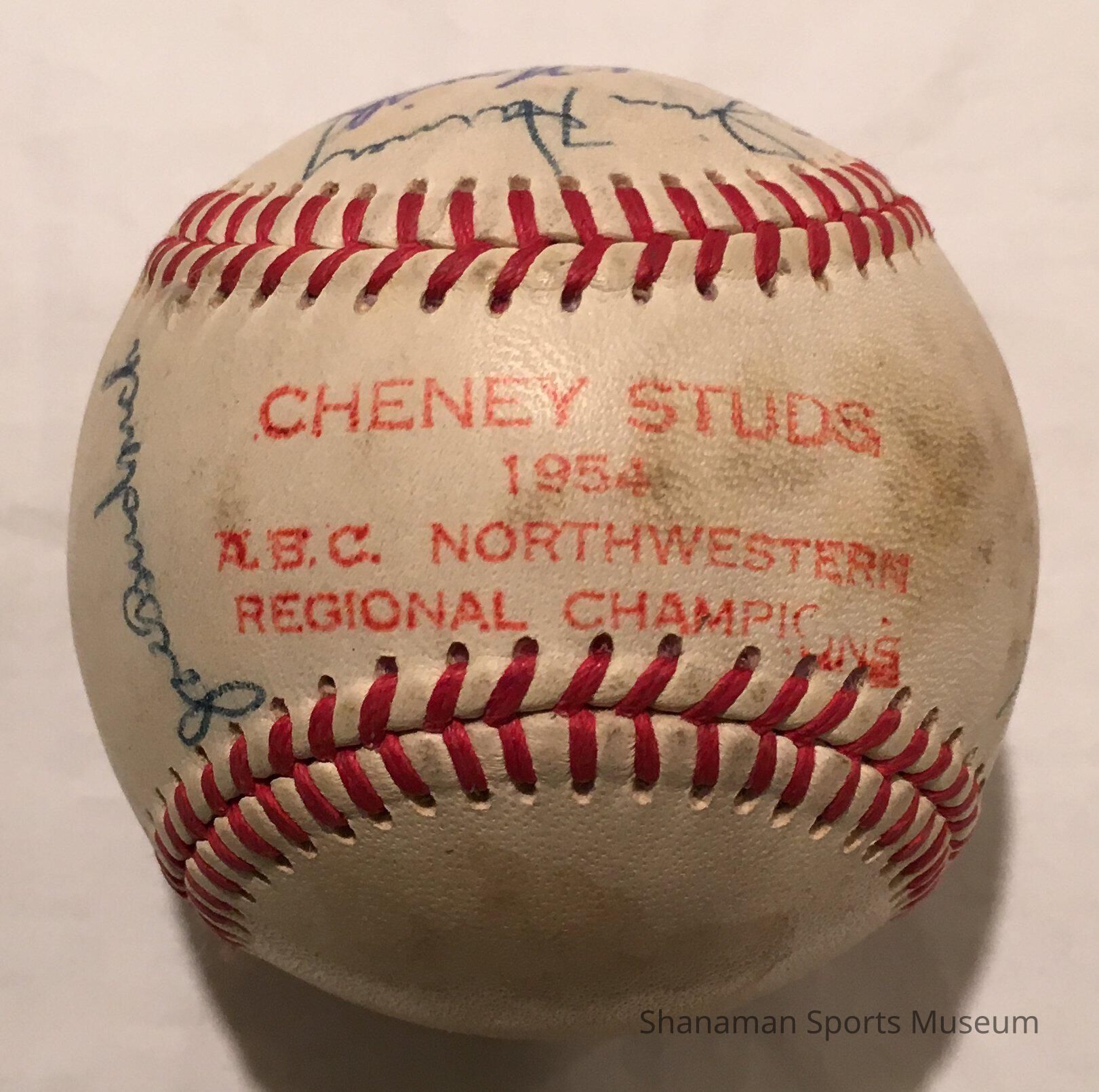 Baseball, "Cheney Studs 1954 A.B.C. Northwestern Regional Champions", signed by members of the 1954 Cheney Studs team.Relationships