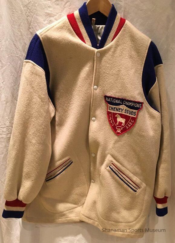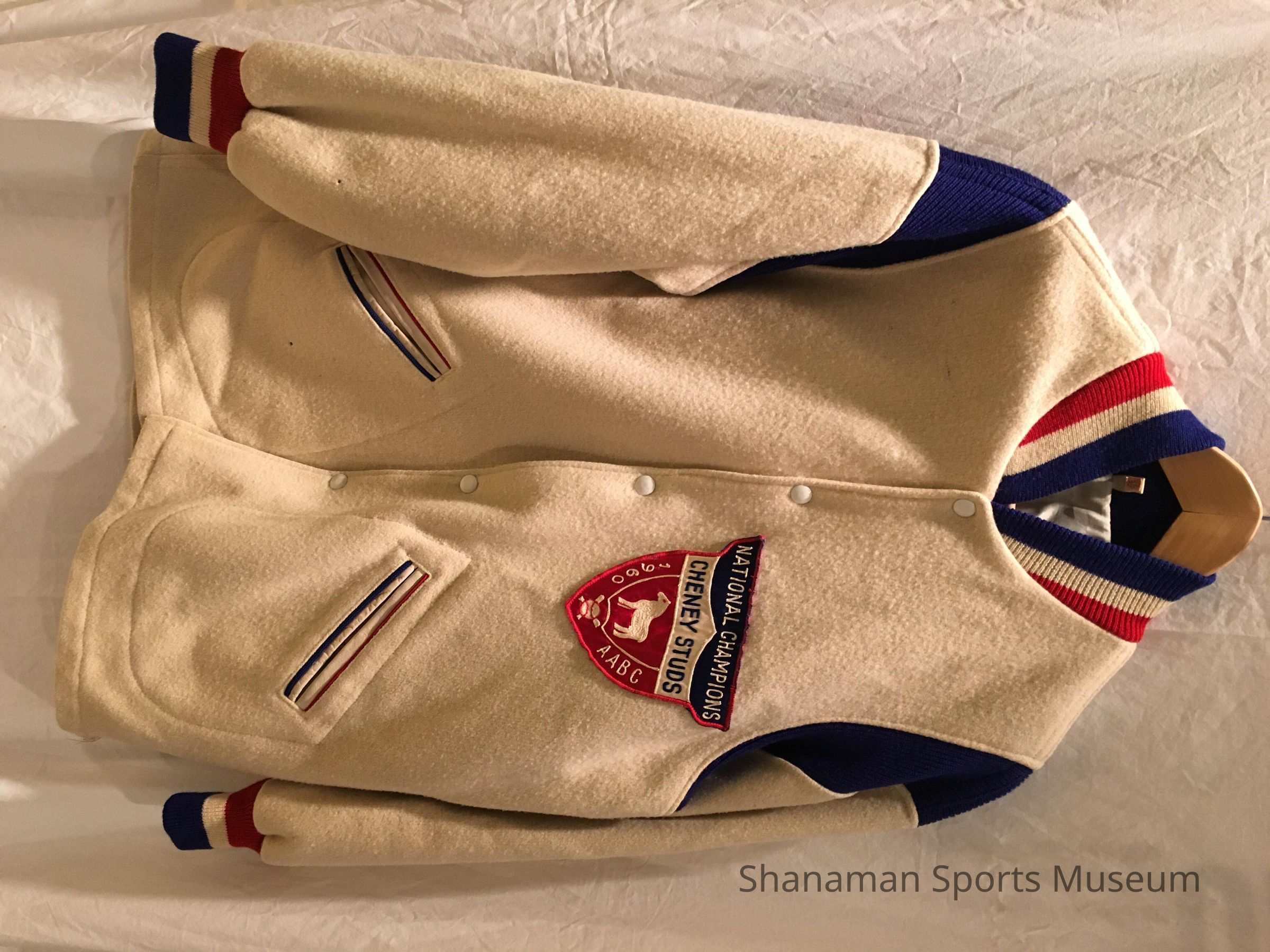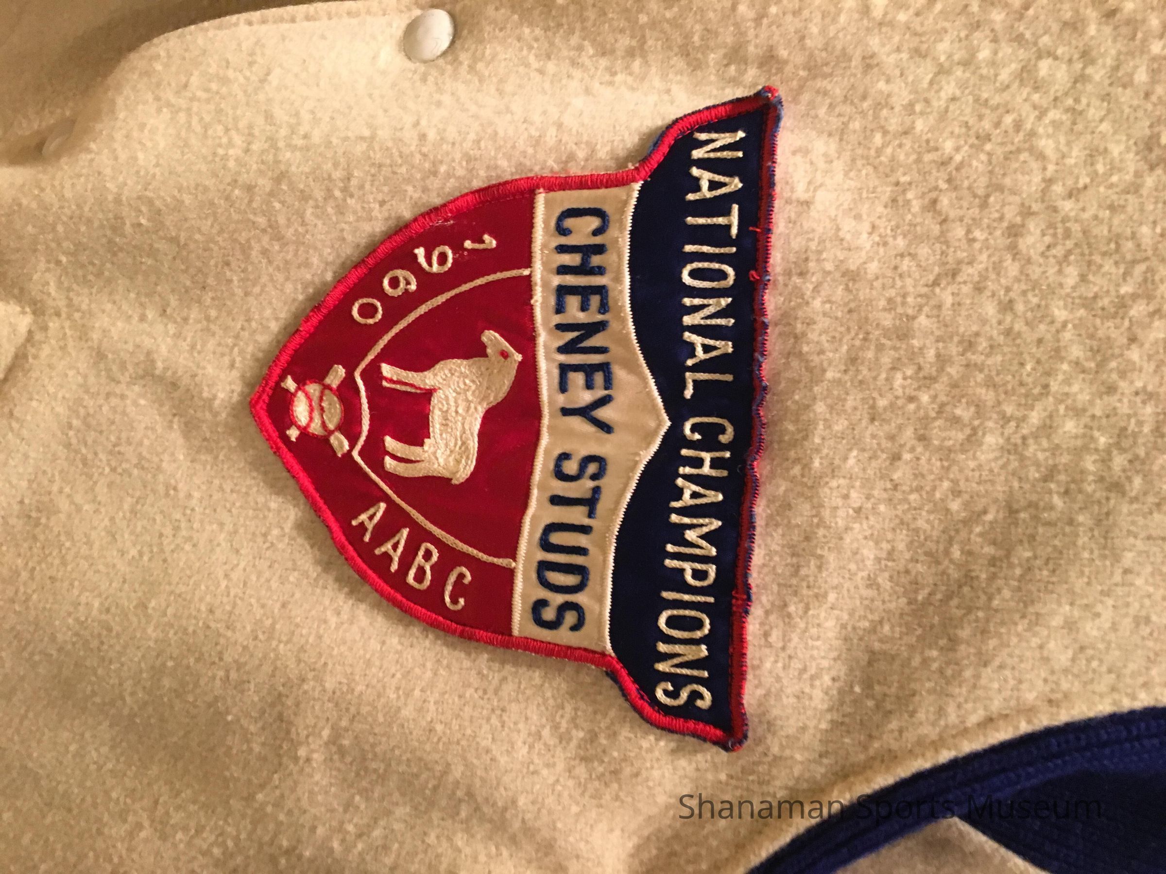 This jacket was presented to Phil Swimley after the Cheney Studs baseball team won the 1960 AABC (American Amateur Baseball Congress) national championship.