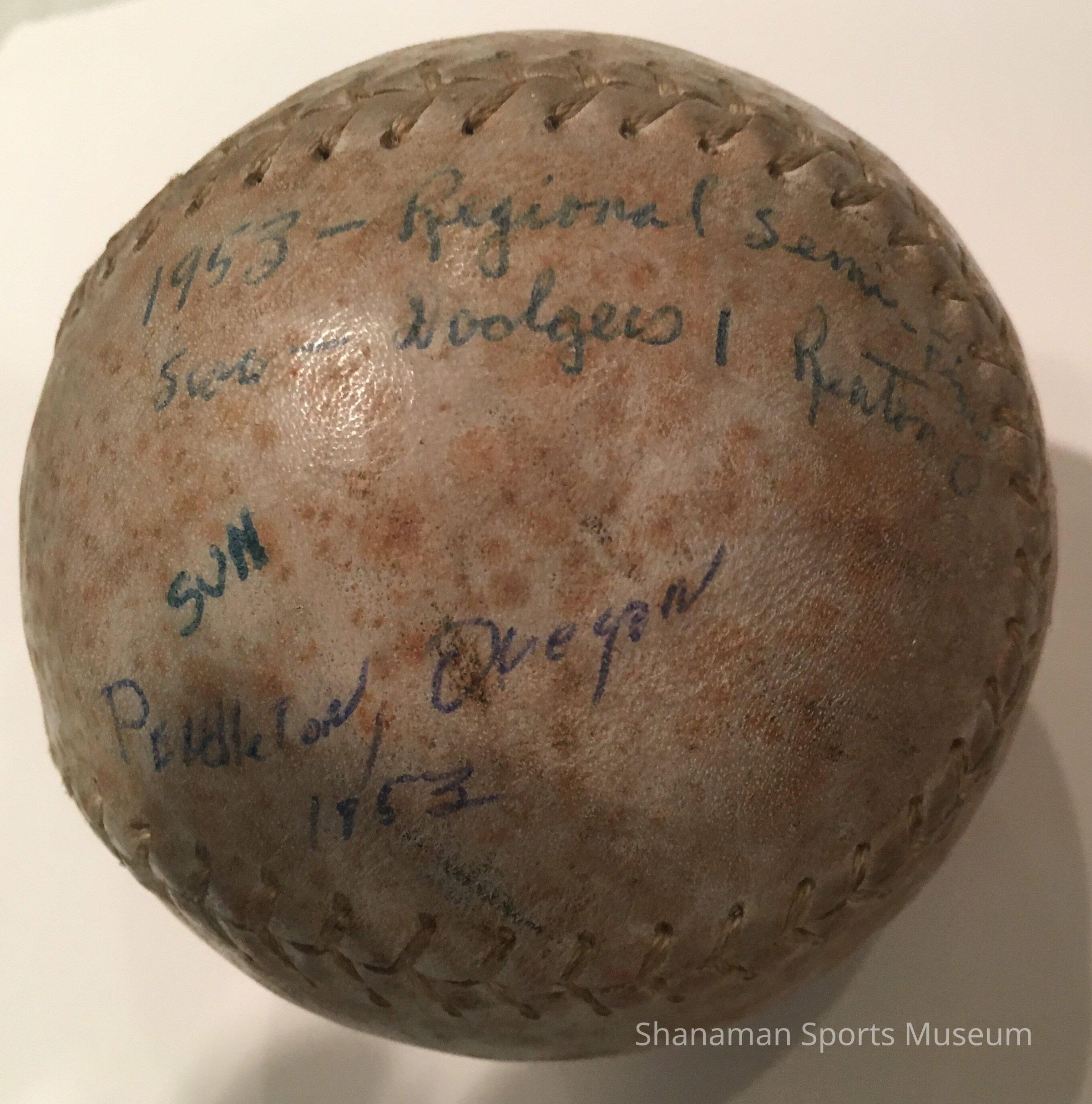 This is an autographed softball from the 1953 regional semifinals held in Portland, ORLexicon