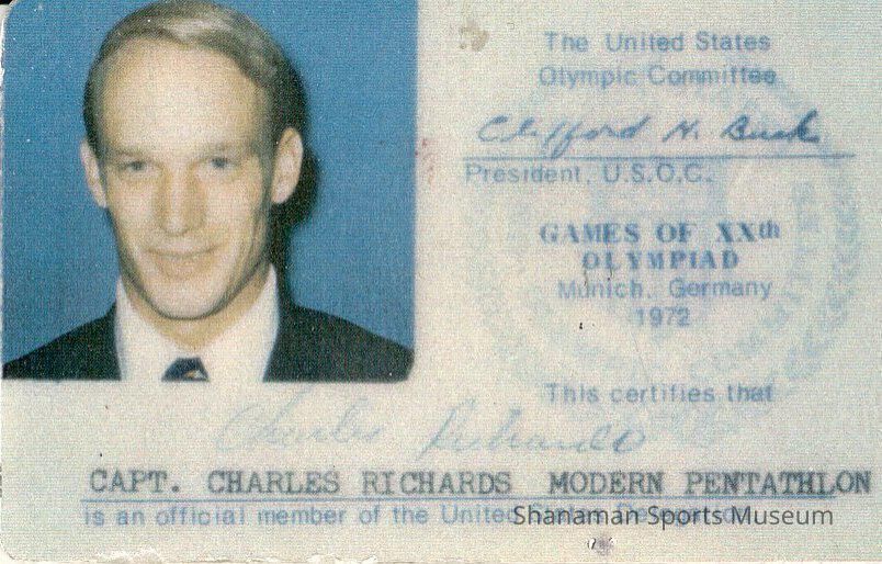 Chuck Richards’ athlete credentials for the 1972 Summer Olympics in Munich, Germany. The Stadium High graduate was the top American in the modern pentathlon at the ‘72 Games, finishing 9th and leading Team USA to a fourth place finish. Richards was especially strong in the swim, a sport he won six state tiles in at Stadium High. As a senior at Stadium, he held seven of the eight individual state records. He was a two-time All-America swimmer at Indiana University and won the 1967 junior modern pentathlon championship. At the Munich Games, Richards set an Olympic and World Record for the 300-meter modern pentathlon swim. The three-time national champ was inducted into the Tacoma-Pierce County Sports Hall of Fame in 2005.Lexicon