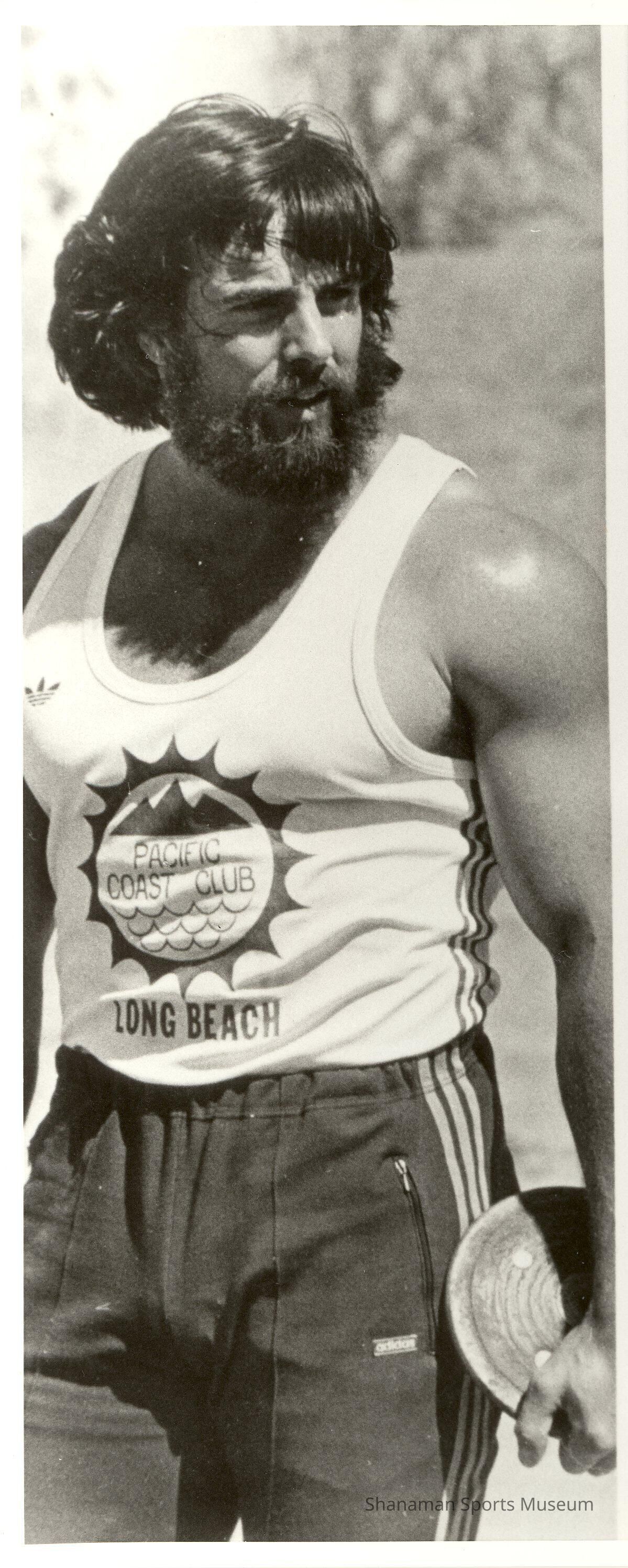 Wearing his Pacific Coast Club track singlet, Mac Wilkins holds a discus. He was at the top of his game in '76, qualifying for the Olympics and winning gold. Wilkins attended Clover Park High before moving to Beaverton, Oregon, to finish high school and then going on to become a Northwest sports legend. He won an NCAA discus title for the Oregon Ducks. After winning gold at the '76 Games he earned silver in 1984 and finished fifth in ‘88. Team USA boycotted the 1980 Olympics in the Soviet Union, likely costing Wilkins another medal. In 1980 he had the best throw of his career - 70.98 meters.Lexicon