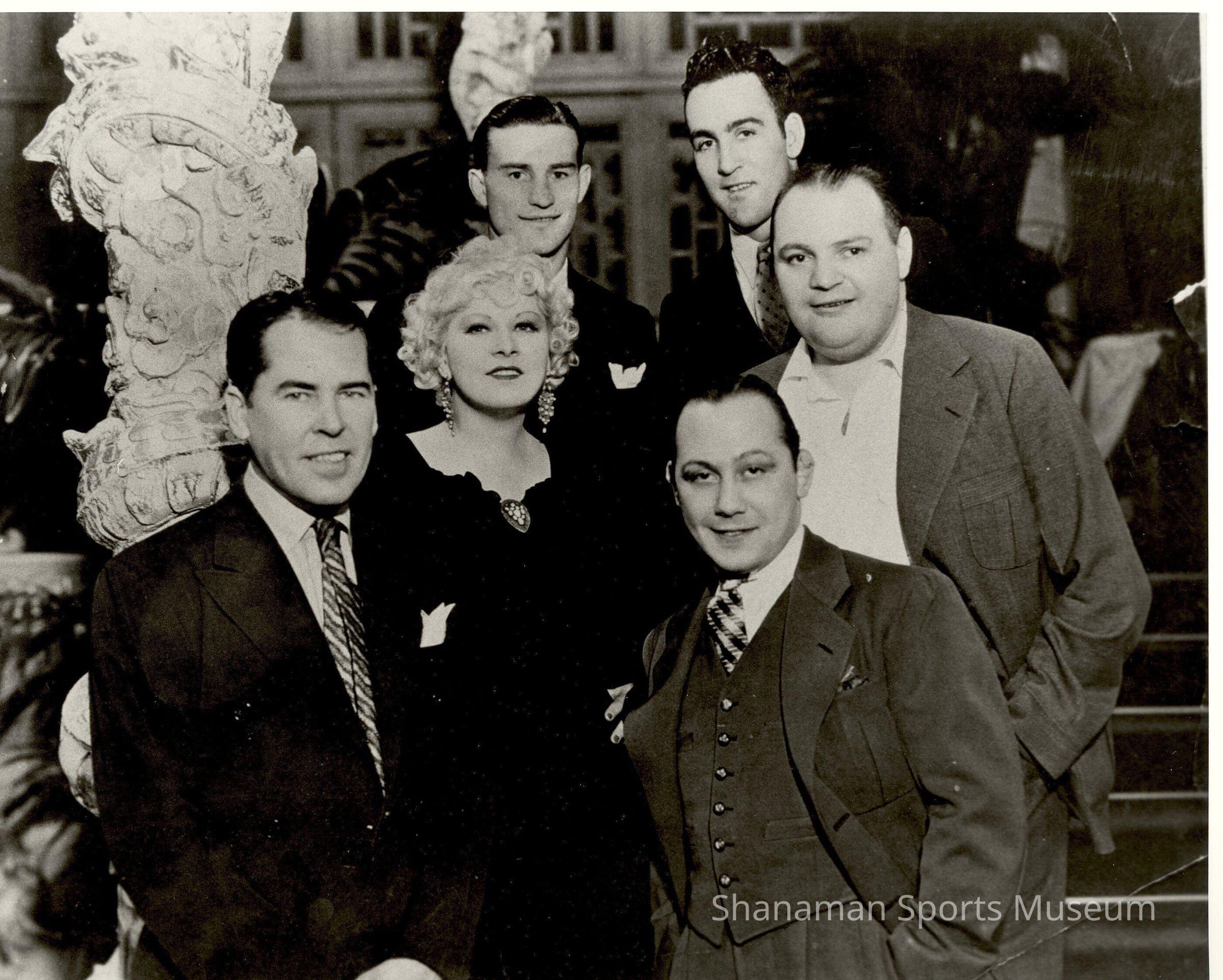 Steele (back row, left) is standing by movie stars Mae West, George Raft and Davie Miller. Steele had a successful pro boxing career, winning the middleweight championship in 1936 and losing only two fights in his first 10 years of boxing. Freddie Steele, who was nicknamed the Tacoma Assassin for his knockout punches in pro boxing, got into acting after he retired from boxing at age 25 in 1937.