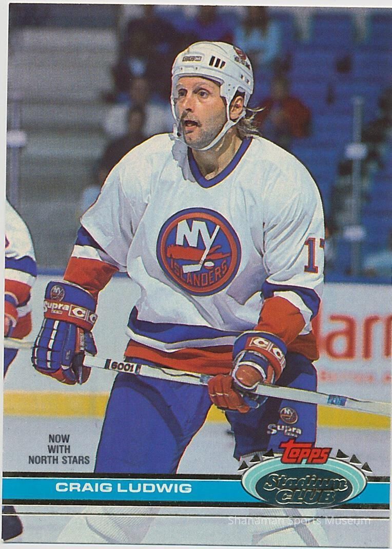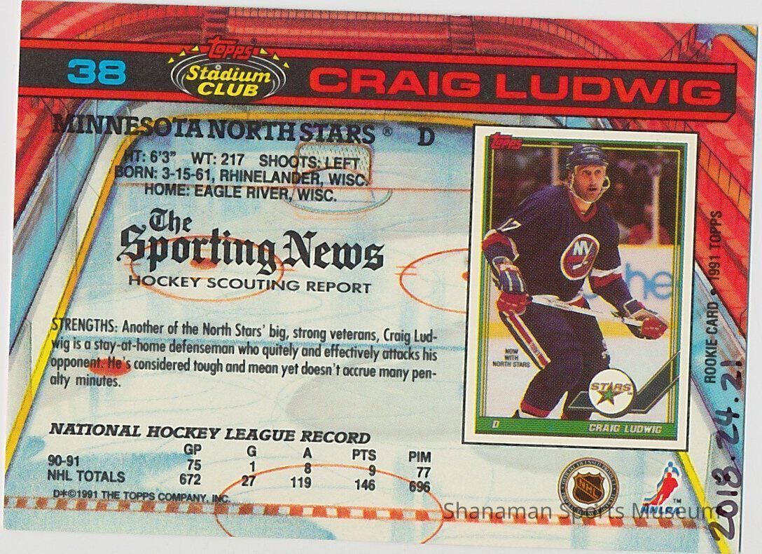 American Craig Ludwig was a third-round draft pick by the Montreal Canadiens in 1980, as shown in his 1990-91 Topps Stadium Club trading card. His 17-year career was played with four teams — Montreal, Minnesota, New York Islanders and Dallas. The defenseman was a physical presence on the ice but didn’t take unnecessary penalties. During his college career, Ludwig helped the University of North Dakota win two national championships.