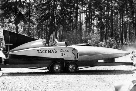 Tacoma's Miss B & I hydroplane sits on a trailer.