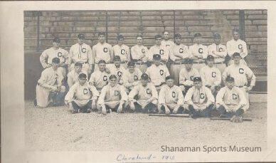 Twenty six members of the 1915 Cleveland Indians pose for a team photo.