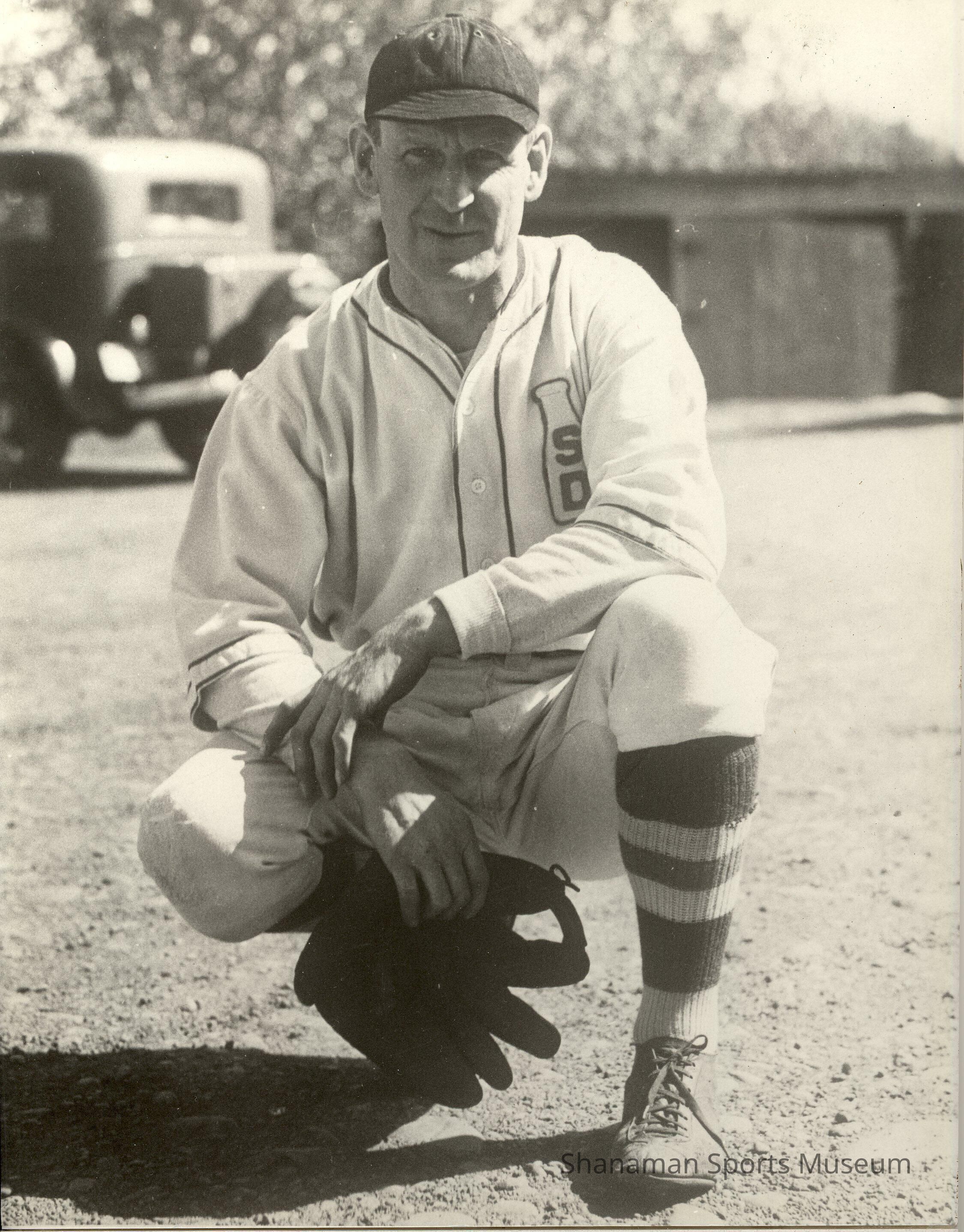 Oscar “Ocky” Haugland kneels wearing his Superior Dairy uniform for a black-and-white photo. Hauland was the manager of the team and filled in as a played when needed. Haugland was inducted into the Tacoma-Pierce County Sports Hall of Fame in 1971. In 1935, Haugland coached a Superior Dairy team that won the city league championship.Lexicon