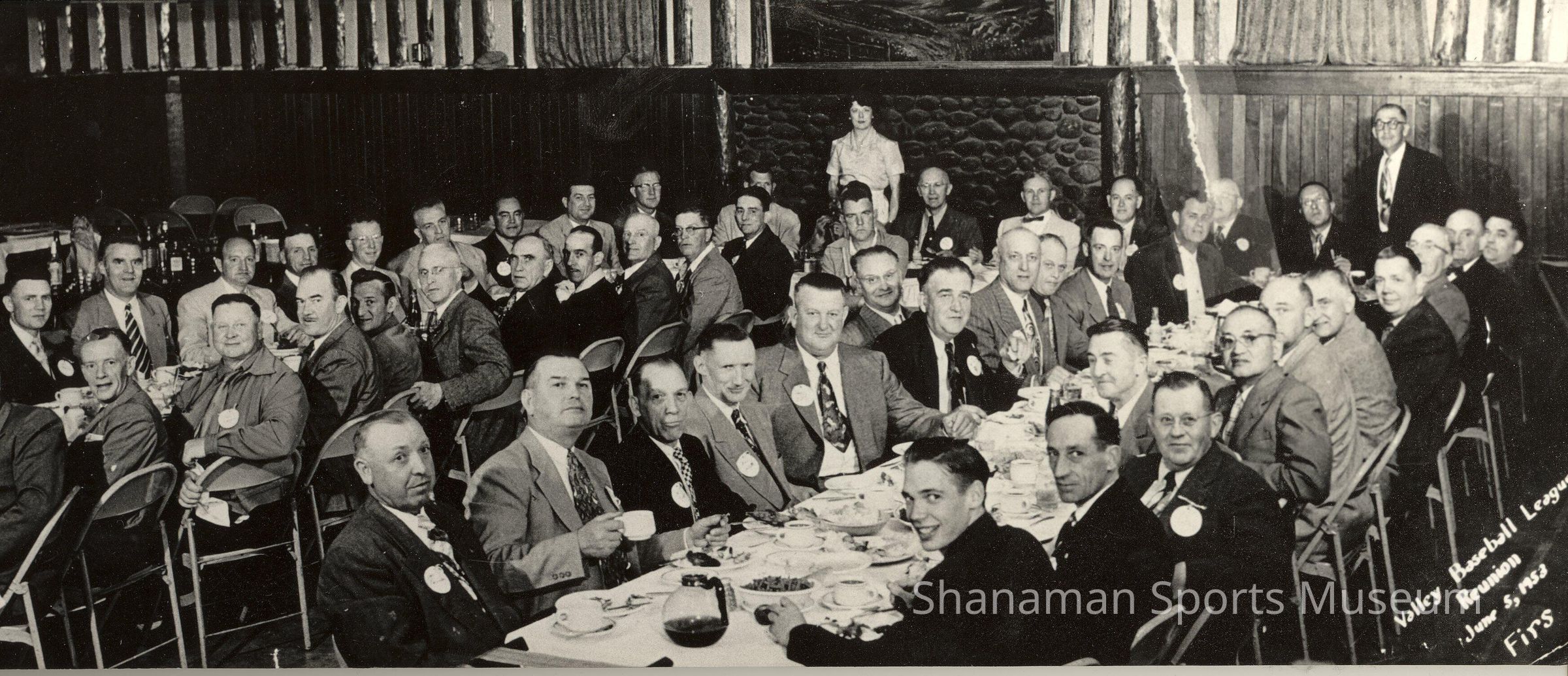 B/w photograph of the 1953 Valley League baseball old timers reunion held on June 5, 1953 at the Firs.Lexicon
