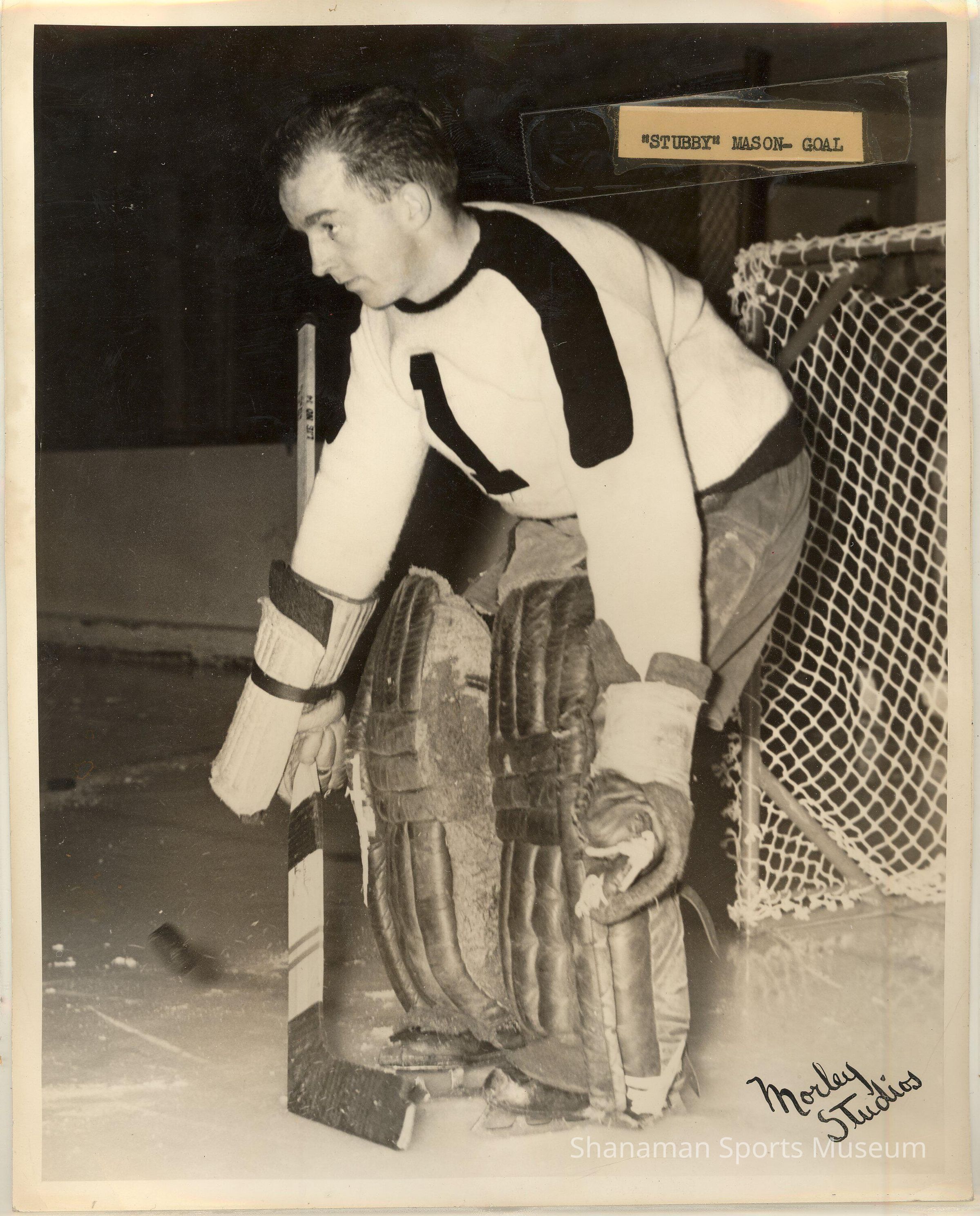 Goaltender Jack “Stubby” Mason played for the Tacoma Rockets during the team’s inaugural 1946-47 season. The Rockets were a professional team that played in Tacoma from 1946 to 1953. Tacoma played in the Pacific Coast Hockey League until becoming a member of the Western Hockey League during the 1952-53 season and relocated to the Tacoma Ice Palace..