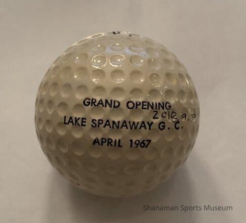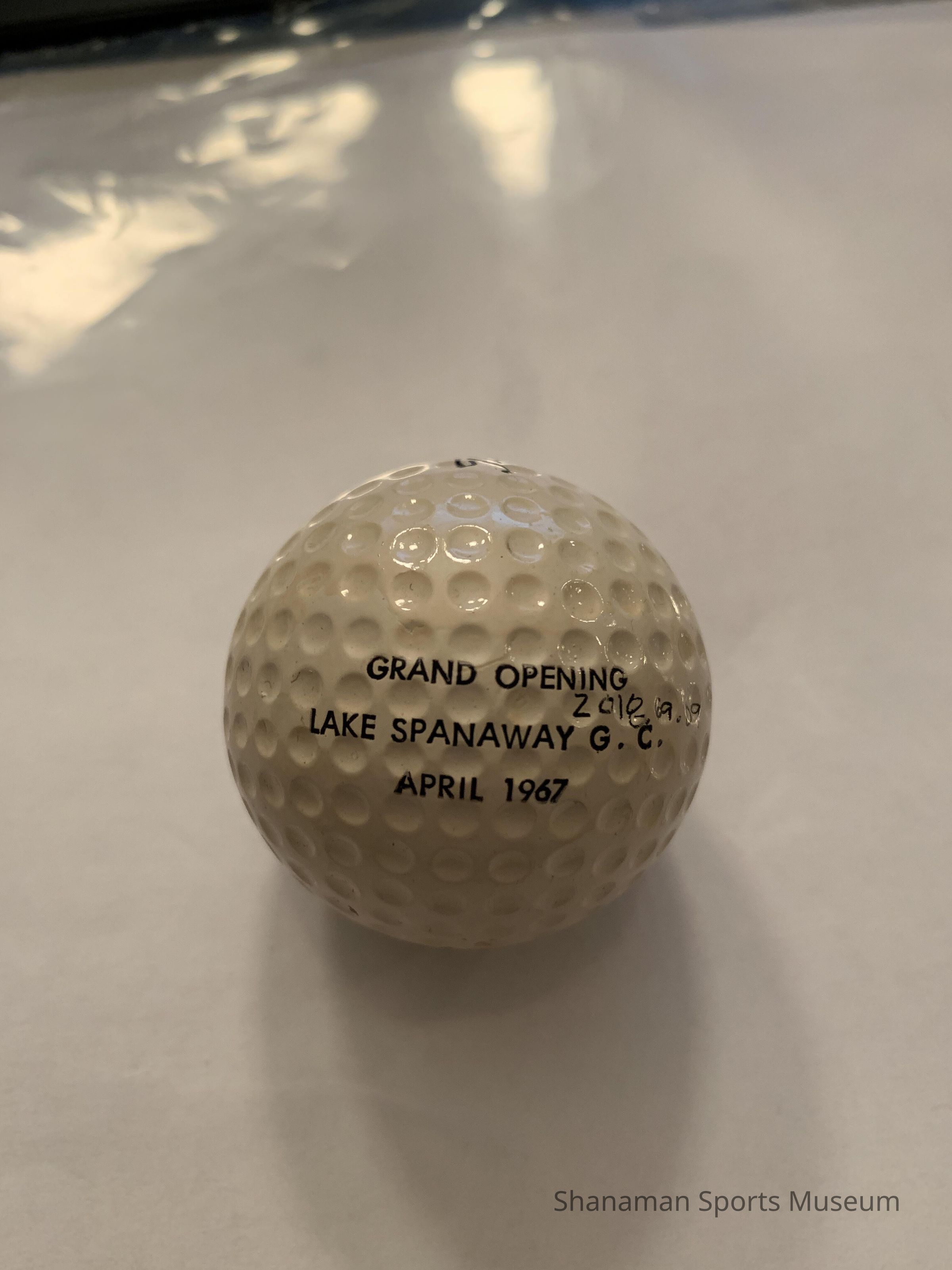 Printed on the ball in black letters is Grand Opening Lake Spanaway G.C. April 1967Lexicon