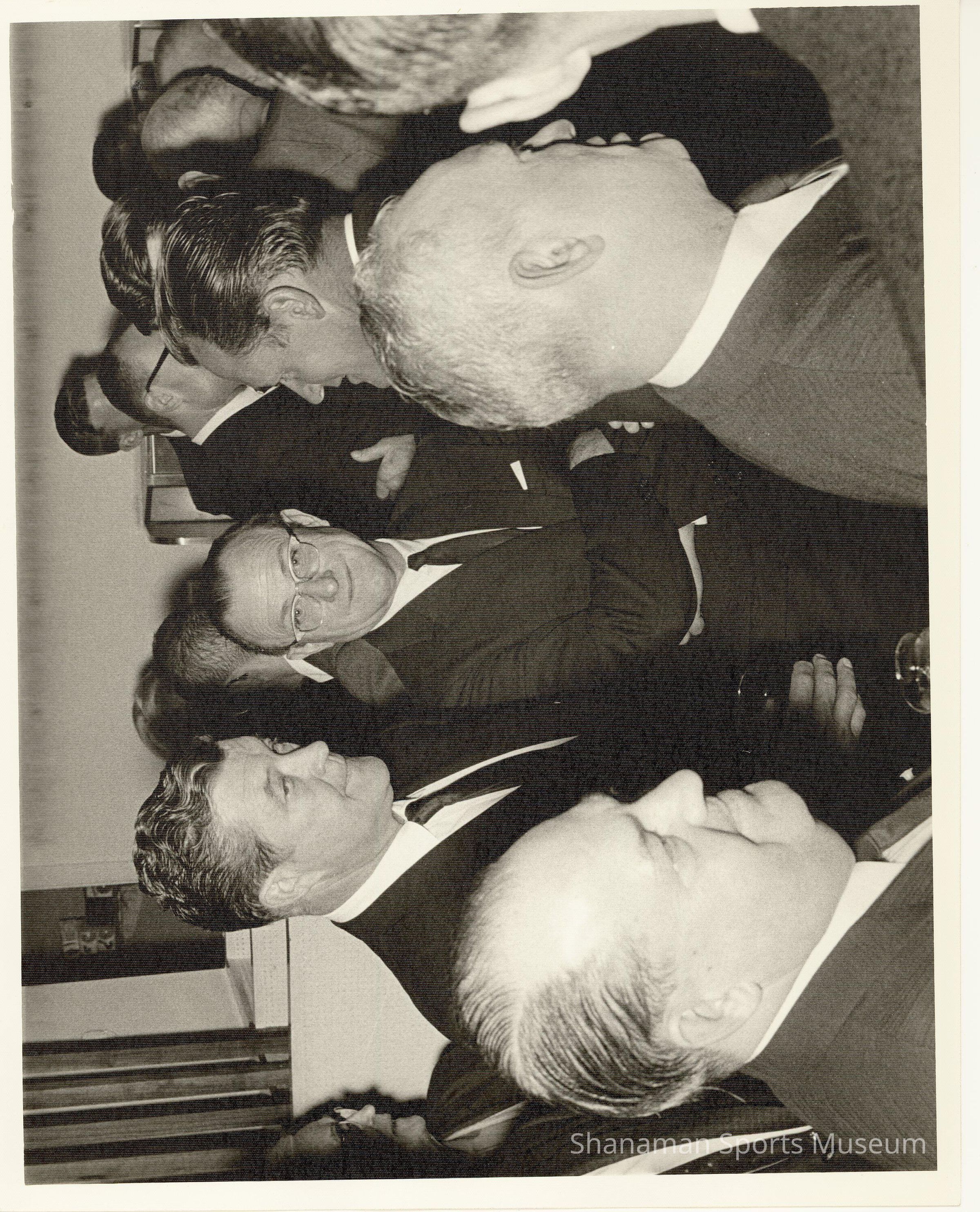 Tacoma Athletic Commission members Russ Dunmire, left, Dennis Morgan and Joe Dessena mingle at TAC event in 1966. The TAC formed in 1947 and has been supporting local sports ever since.