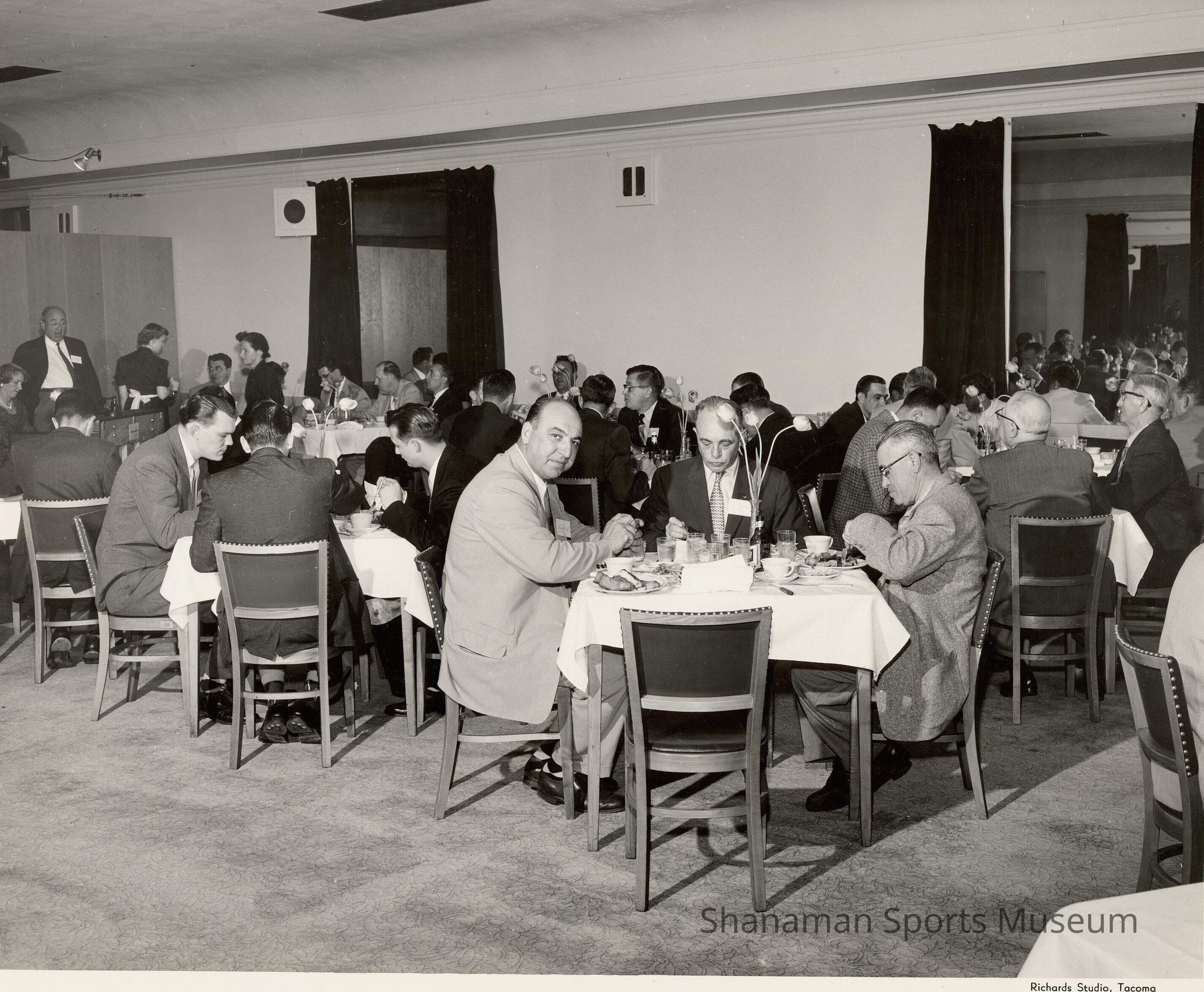 Photo of Sports Hall of Fame Banquet tables with Frank Ruffo in front - 1960-65Lexicon