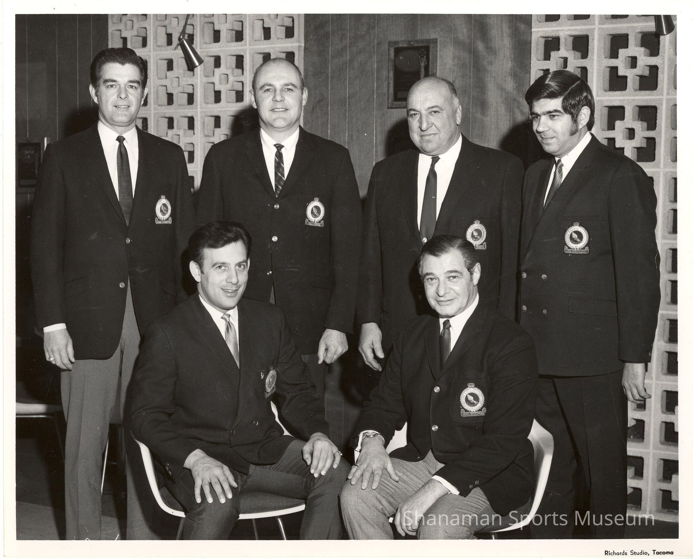 Stan Naccarato is seated on the left and sits with five other members of the Tacoma Athletic Commission in a photo take back in the 1950s. Naccarato was a successful businessman in Tacoma who was a longtime supporter of amateur and professional sports in Tacoma. Sitting next to Naccarato is Morley Brotman, a longtime sports enthusiast who encouraged the construction of the Tacoma Dome. Others in this black-and-white photo are seated, L-R: Naccarato, Brotman. Standing: Hank Semmeran, Bill Rohrs, Frank Ruffo and Joe Macaluso. Semmeran was president of the Tacoma Athletic Commission and a longtime supporter. Like Naccarato, Ruffo also played baseball. He played 12 years with the Cammarano Bros in a Tacoma city league and played on a team that finished fifth at nationals in 1937. Naccarato, who pitched in the minor leagues, came up with perhaps his biggest save in 1971 when he brought together financial support from local businessmen and saved Triple-A baseball in Tacoma and secured an affliliation with the Minnesota Twins. Naccarato, who died in 2016 at age 88, was the former president and general manager of the Tacoma's Triple-A teams when they were the Tacoma Twins, Tacoma Yankees, Tacoma Tugs and Tacoma Tigers. Naccarato, who was born and raised in Tacoma, was an outstanding athlete while attending Clover Park High School, graduating in 1946. He pitched for three years in minor league baseball until an injury to his shoulder cut his career short. In three years of pitching in the minor leagues, he had a 33-10 record.Lexicon