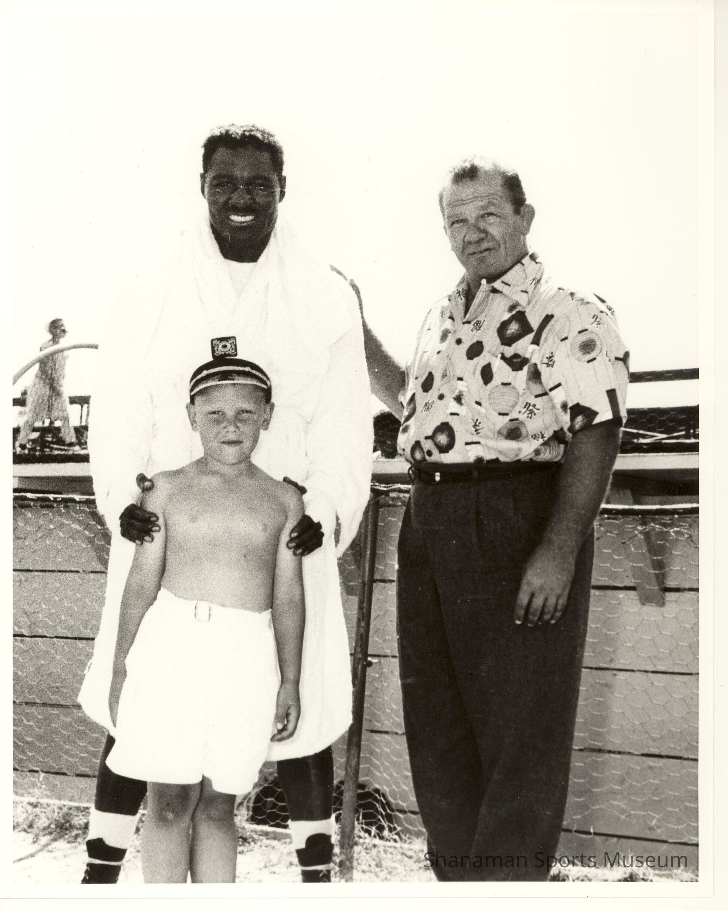 Three unidentified people, two men and a young boy, pose for a photo at a boxing gym in Tacoma. Over the years boxing has been a popular sport in Tacoma because of the Tacoma Boxing Club. In 1978, Tom Mustin became the head coach of of the Tacoma Boxing Club and he coached with the club for 45 years. In 1970, Mustin was the head coach of the U.S. Olympic team.Lexicon