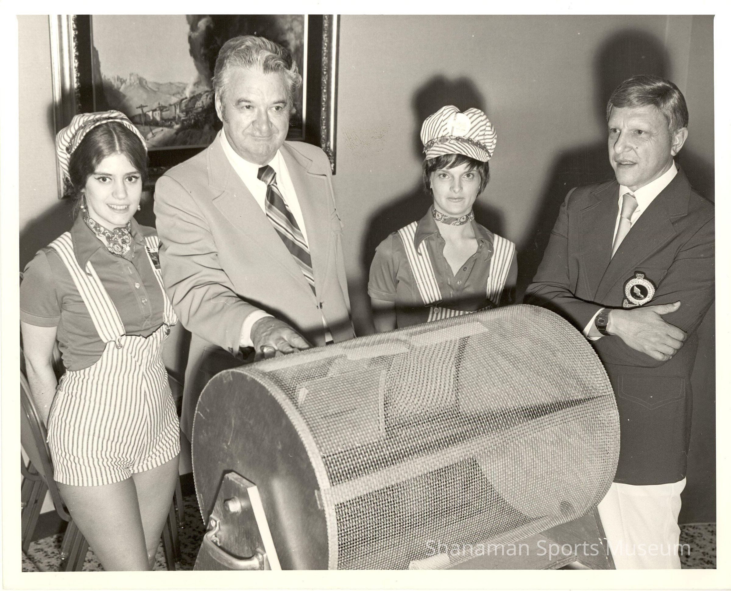B/W original print of 2 men, 2 women, the later wearing short style overalls and railroad style hats. Cadillac Dinner.Lexicon