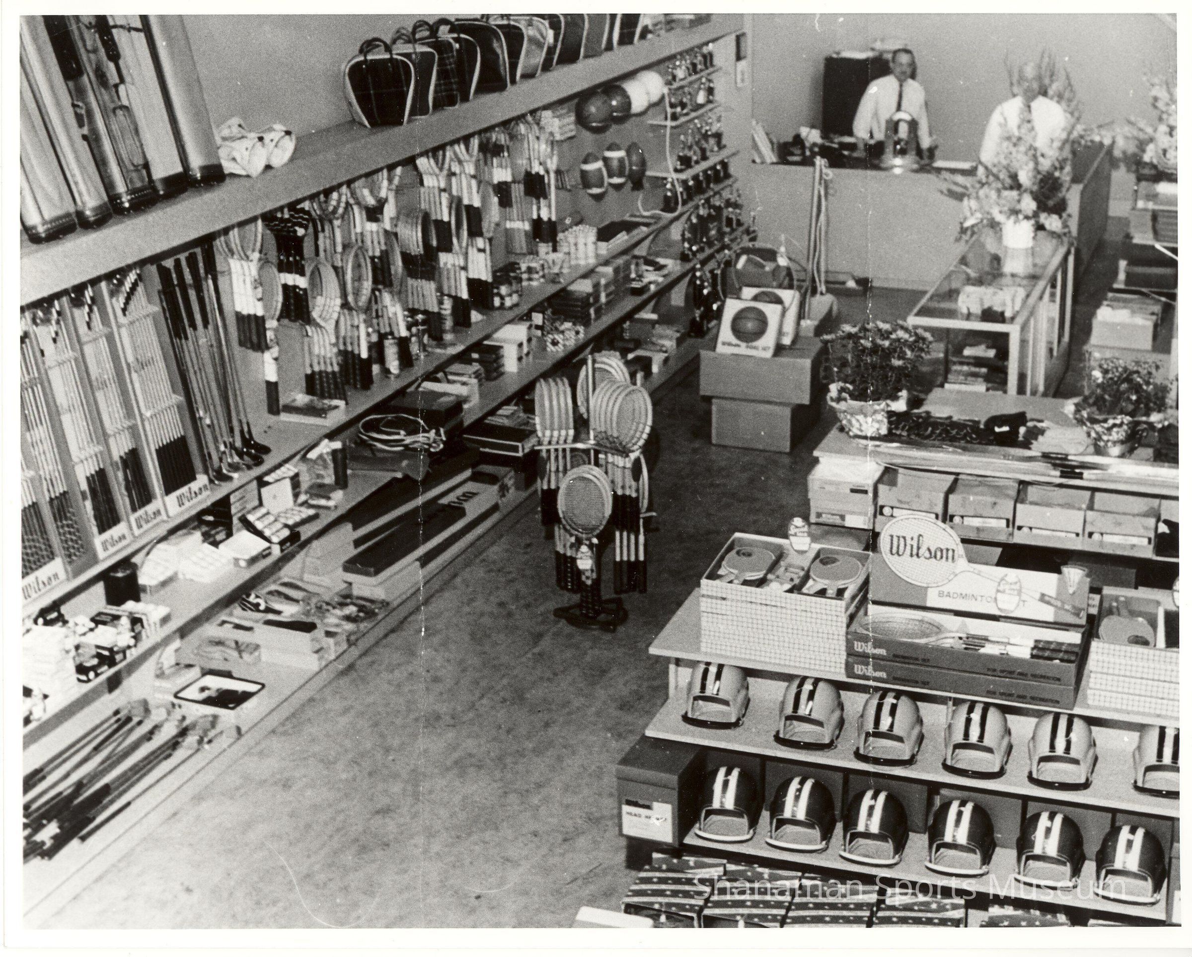 This black-and-white photo is of Dill Howell's sporting goods store in downtown Tacoma. Howell's Sporting Goods Store opened in 1936. Howell was supportive of all local sports. As president and co-founder of the Tacoma Athletic Club, he was active with all TAC promotions like the grid-go-round, hoop-go-round, Harlem Globetrotters exhibition games, Golden Gloves boxing and more.Lexicon