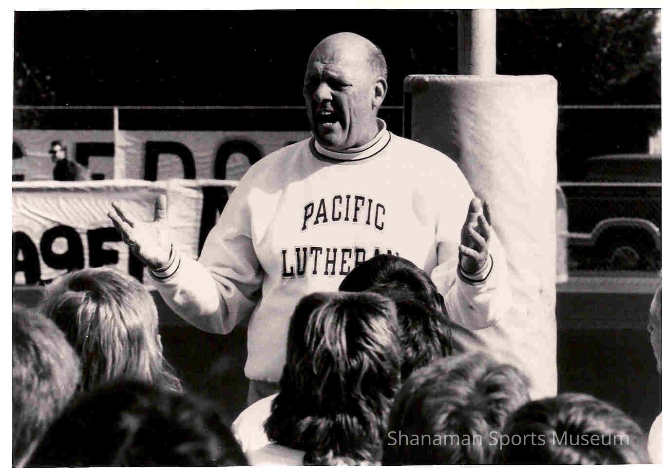 Frosty Westering, who was the head football coach at Pacific Lutheran University for 31 years, speaks to his football team during a practice. Well known for his motivational speaking, Westering wrote a book titled “Make the Big Time Where You Are.” The theme of the book is making a difference wherever you are at. In preseason training, Westering would take his teams to the beach for a week-long getaway, knitting his players for the upcoming season and setting lifelong goals. Westering won four national titles at PLU and compiled a 262-70-5 record with the Lutes. His career record of 305-96-7 is the most wins for the NAIA and ranks ninth in wins among all college football coaches.Lexicon
