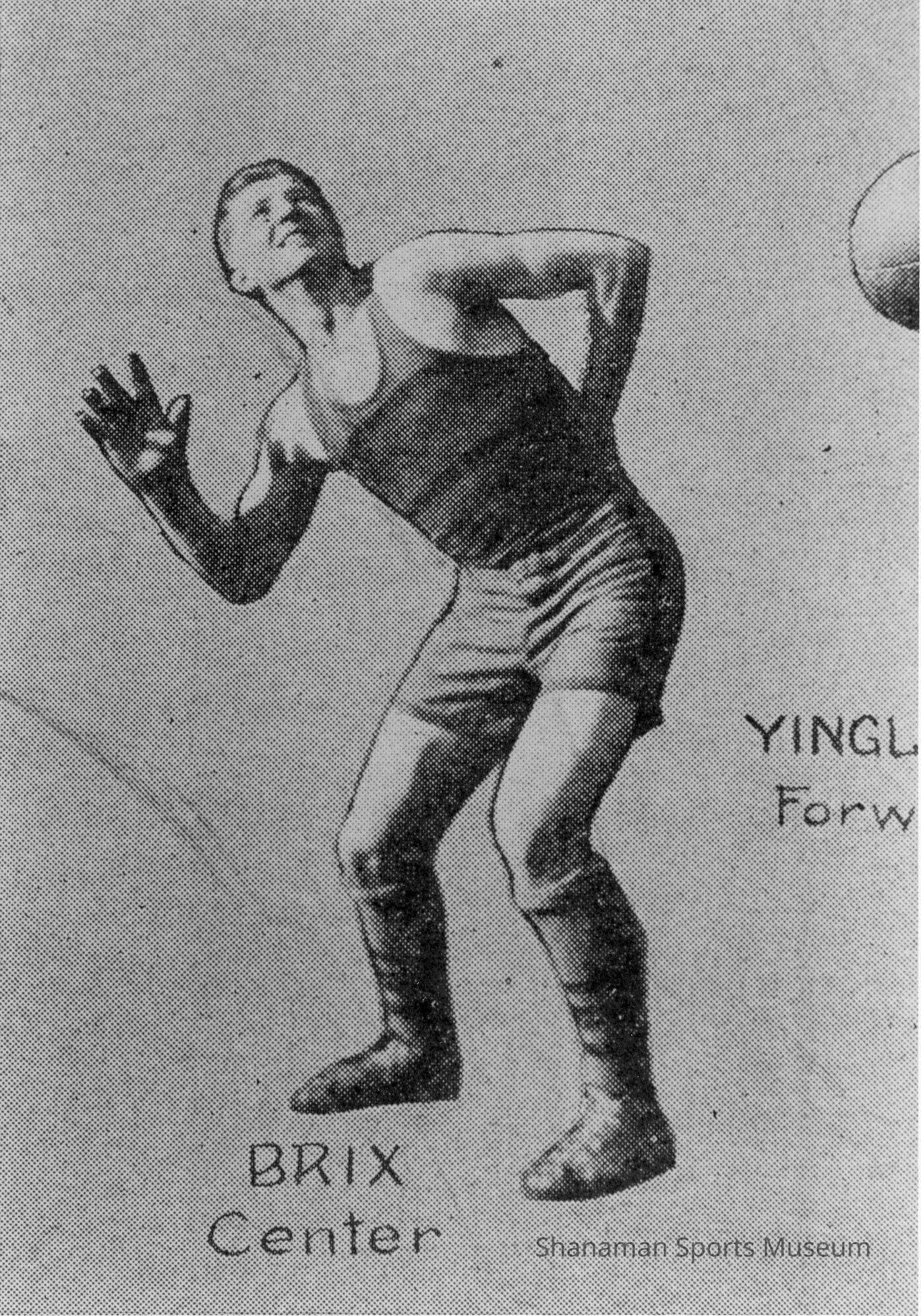 B/W copy print. Photo is a reprint 'cut-out' photo (halftone) display with "Brix" as "Center". Photo is grainy and incomplete.Lexicon