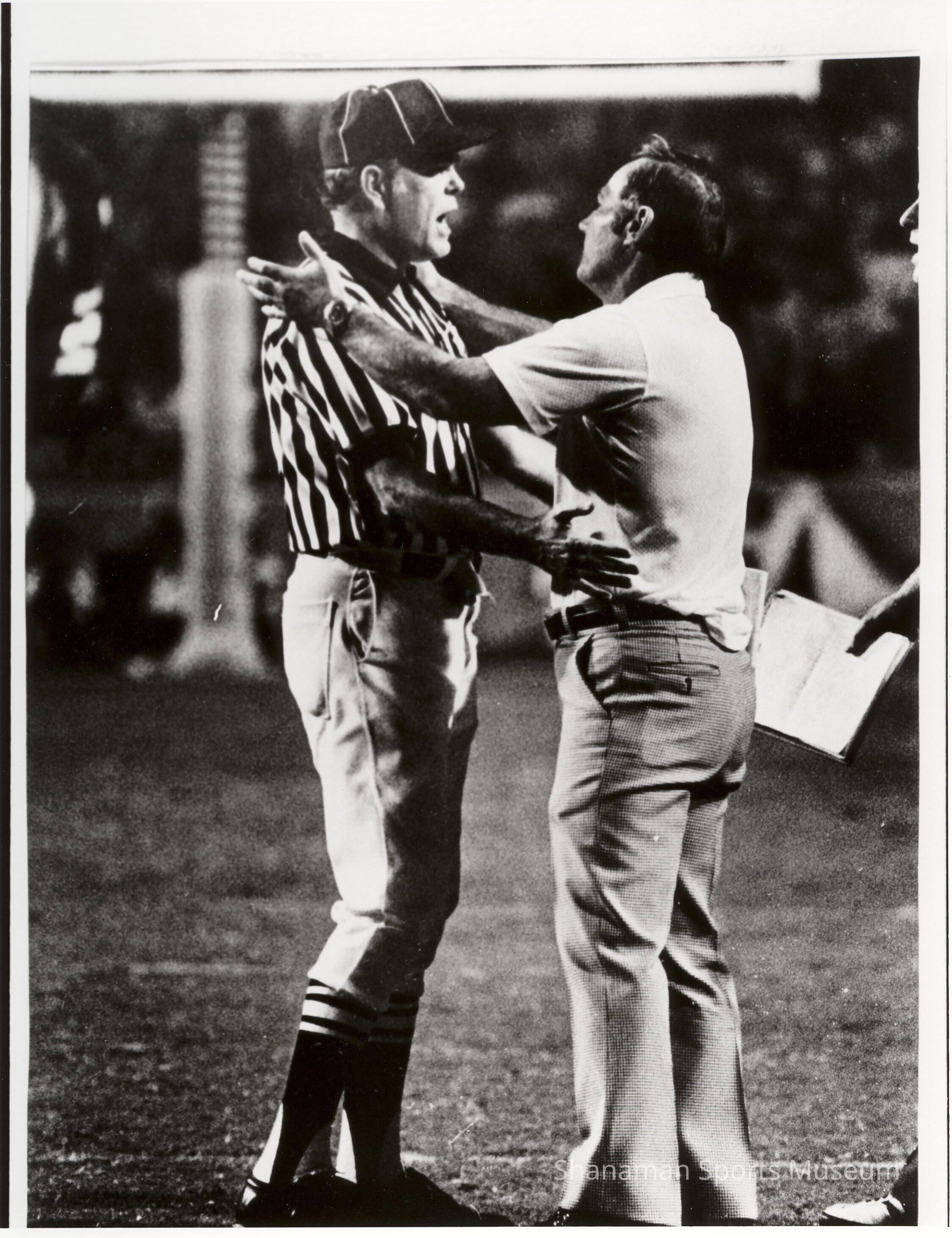 Football official Ray Highsmith of Tacoma has a discussion with an unidentified coach.Lexicon
